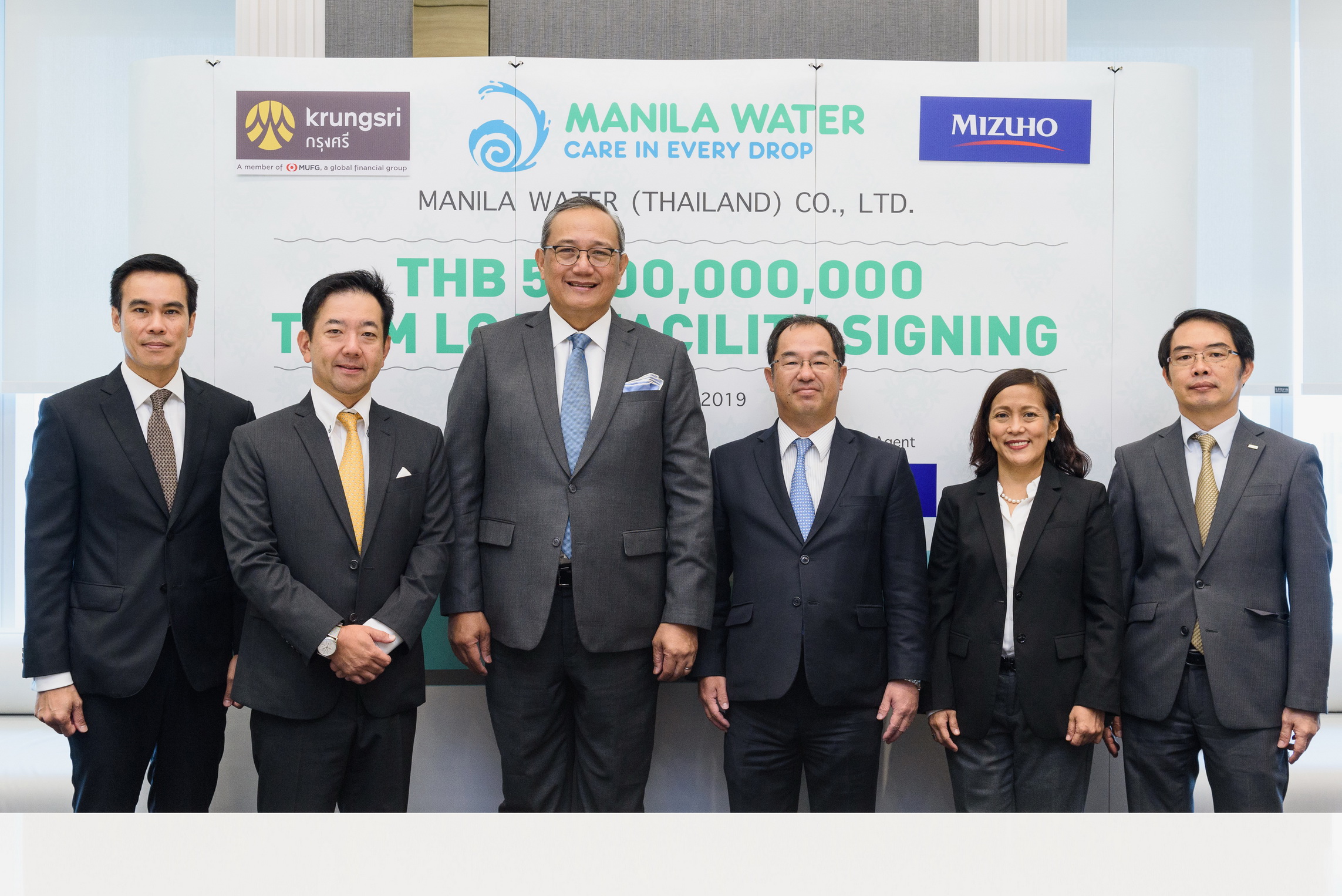 กรุงเทพฯ 12 มีนาคม 2562 : ยูโซะ นาคาดะ (ที่ 2 จากซ้าย) ประธานกลุ่มธุรกิจธนกิจพาณิชย์เกี่ยวกับญี่ปุ่น ธนาคารกรุงศรีอยุธยา จำกัด (มหาชน) เวอร์จิลิโอ ซี ริเวอร์รา จูเนียร์ (ที่ 3 จากซ้าย) ประธานคณะกรรมการบริษัทมะนิลา วอเตอร์ (ประเทศไทย) จำกัด และ Kazuya Nakagawa (ที่ 3 จากขวา) General Manager ธนาคารมิซูโฮ สาขามะนิลา ลงนามสัญญาให้การสนับสนุนทางการเงินมูลค่ารวม 5,300 ล้านบาท แก่บริษัท มะนิลา วอเตอร์ (ประเทศไทย) จำกัด ซึ่งเป็นบริษัทในเครือมะนิลา วอเตอร์ คอมปานี ของกลุ่ม Ayala Corporation ของฟิลิปปินส์ เพื่อใช้สำหรับการขยายธุรกิจในไทย ภายหลังการการเข้าถือหุ้นบริษัทจัดการและพัฒนาทรัพยากรน้ำภาคตะวันออก จำกัด (มหาชน) (East Water)