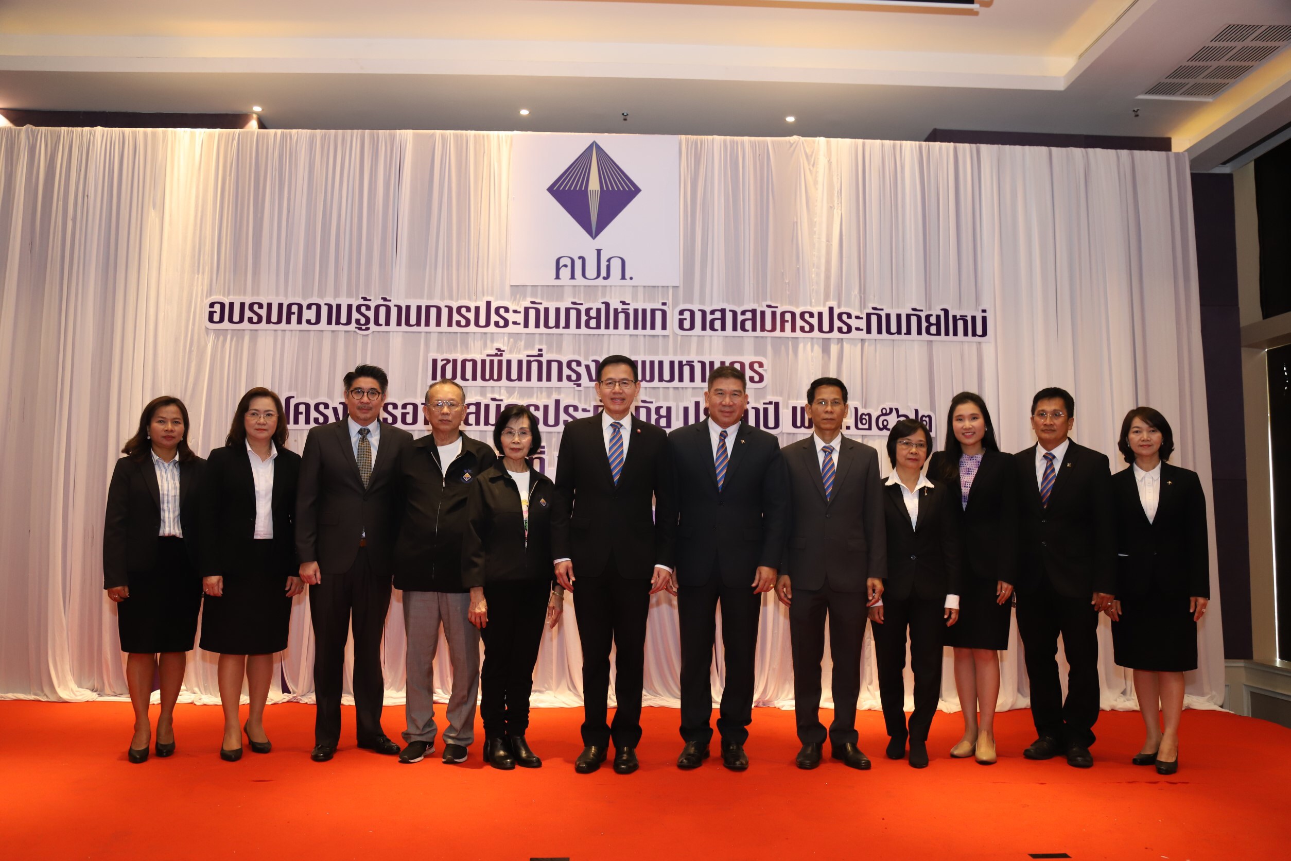 เลขาธิการ คปภ. กล่าวว่า สำนักงาน คปภ. มีความห่วงใยประชาชนในทุกระดับ จึงได้สร้างความร่วมมือและบูรณาการร่วมกับภาคธุรกิจประกันภัยและองค์กรเครือข่ายที่เกี่ยวข้อง แต่เนื่องจากการนำข้อมูลความรู้เกี่ยวกับประกันภัยไปสู่ในระดับชุมชนยังไม่ครอบคลุมในทุกพื้นที่ จึงได้ส่งเสริมให้มีกลุ่มบุคคลในท้องถิ่นที่มีบทบาทและใกล้ชิดกับประชาชน เพื่อเป็นสื่อกลางในการนำความรู้ด้านประกันภัยไปสู่ชุมชนของตนเอง จึงได้จัดทำโครงการอาสาสมัครประกันภัยอย่างต่อเนื่องทุกปี เพื่อผลิตอาสาสมัครประกันภัยมืออาชีพเพื่อเป็นเครือข่ายให้กับสำนักงาน คปภ. โดยสรรหาจากบุคคลที่มีศักยภาพในท้องถิ่นที่มีบทบาทและใกล้ชิดกับประชาชน เพื่อสร้างเครือข่ายและการมีส่วนร่วมในการทำงานกับสำนักงาน คปภ. ในการเผยแพร่ความรู้ด้านการประกันภัยและช่วยเป็นสื่อกลางในการให้คำแนะนำและช่วยเหลือประชาชนด้านการประกันภัย เพื่อทำบทบาทหน้าที่