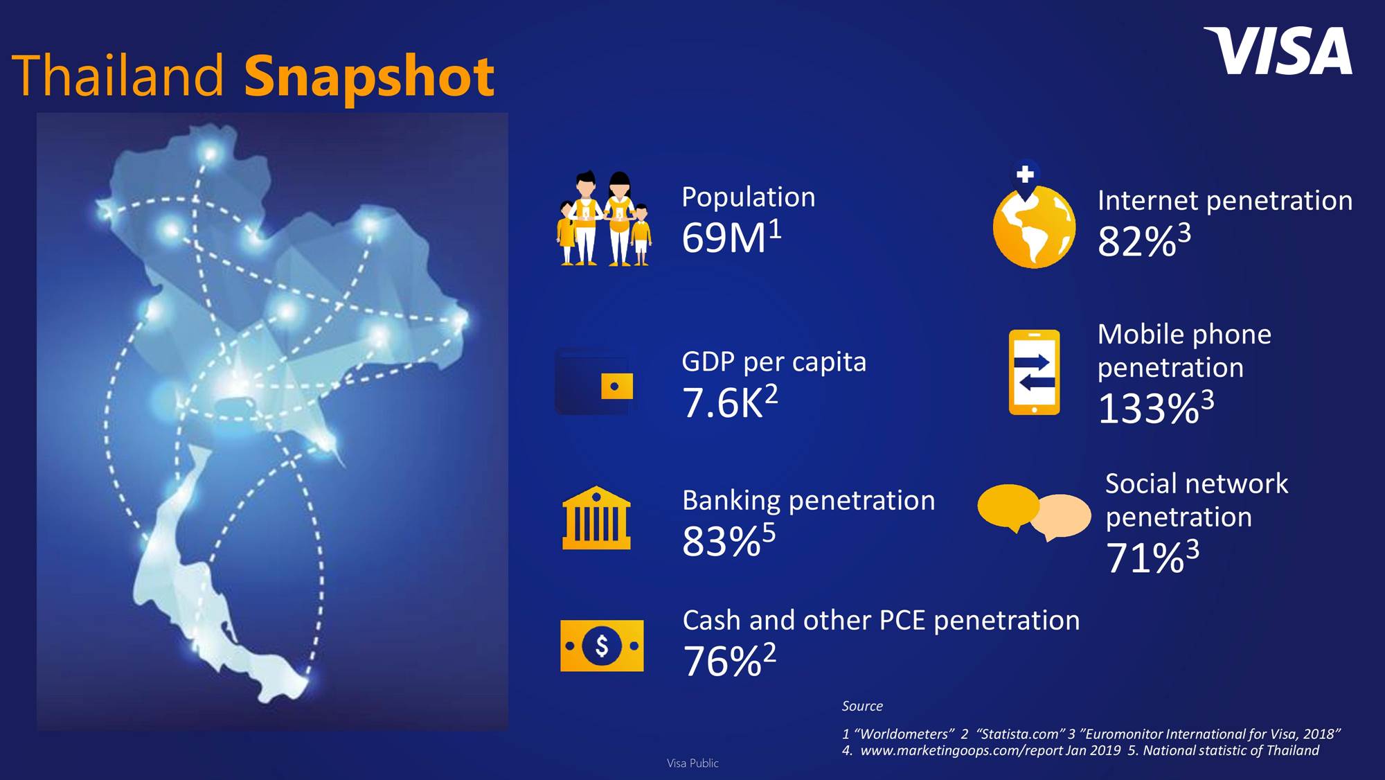3 เมษายน 2562 : การสำรวจเกี่ยวกับการศึกษาเรื่องทัศนคติการชำระเงินของผู้บริโภคประจำปี 2561 ของวีซ่า จัดทำโดย Intuit Research ตั้งแต่ช่วงกลางปี 2018 ใน 8 ประเทศที่ตั้งอยู่ในภูมิภาคเอเชียตะวันออกเฉียงใต้ ได้แก่ กัมพูชา อินโดนีเซีย มาเลเซีย เมียนมาร์ ฟิลิปปินส์ สิงคโปร์ ไทย และเวียดนาม โดยรวบรวมข้อมูลจากกลุ่มตัวอย่างกว่า 4,000 คน ซึ่งรวมถึงกลุ่มคนวัยทำงานจากประเทศไทยจำนวน 500 คน ที่มีอายุระหว่าง 18 – 65 ปี ครอบคลุมในทุกระดับการศึกษาและมีรายได้ขั้นต่ำที่ 15,000 บาท เป็นต้นไป
