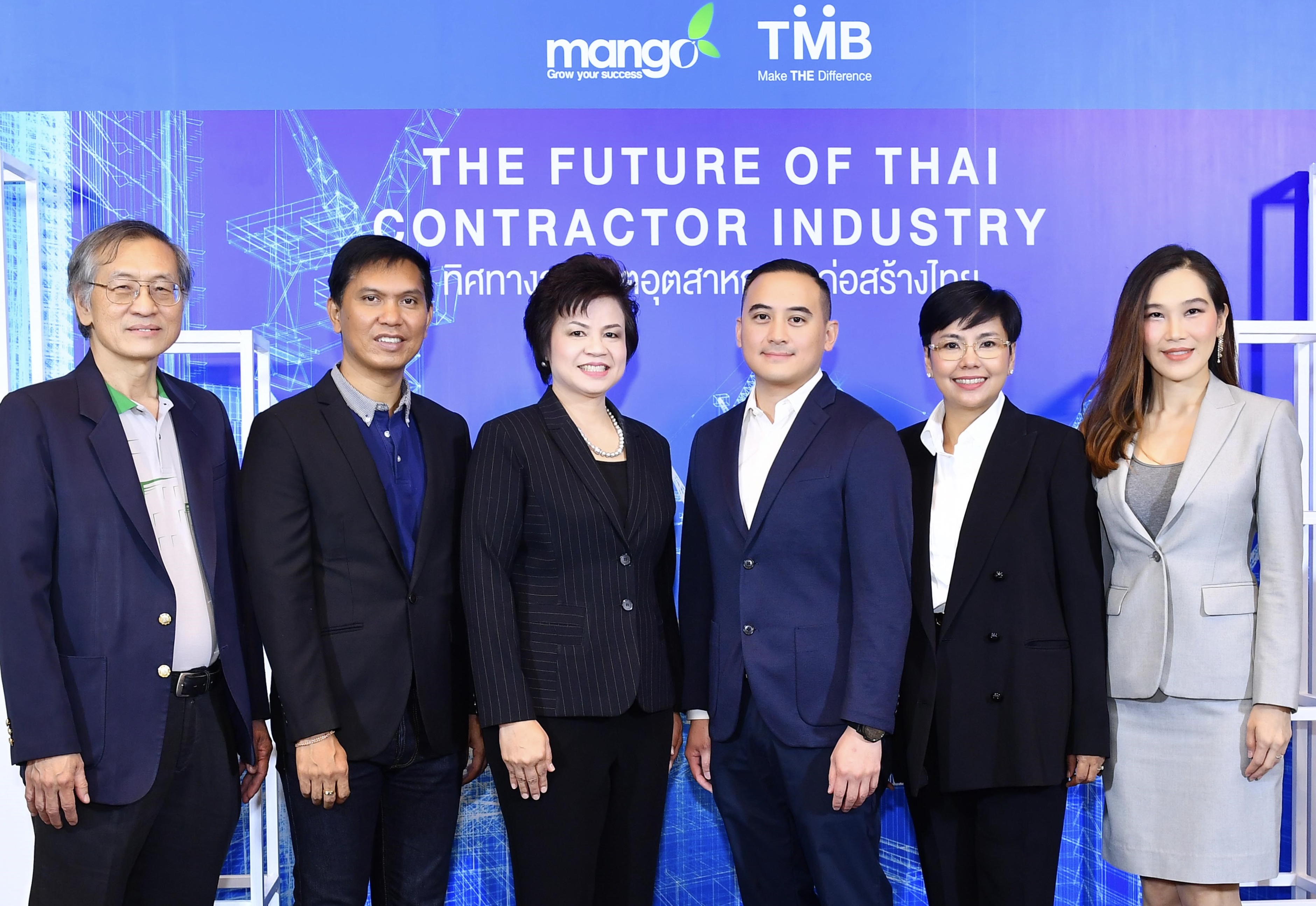 3 เมษายน 2562 : รัชกร ชยาภิรัต (ที่สามจากขวา) หัวหน้าเจ้าหน้าที่บริหารนวัตกรรมทางดิจิทัล (ลูกค้าธุรกิจ) ทีเอ็มบี ร่วมกับ อัญชลี วงศ์พินทุ (ที่สามจากซ้าย) ประธานกรรมการบริหาร บริษัท แมงโก้ คอนซัลแตนท์ จำกัด จัดงานสัมมนาทิศทางอนาคตอุตสาหกรรมก่อสร้างไทย THE FUTURE OF THAI CONTRACTOR INDUSTRY แก่ลูกค้าธุรกิจ เพื่อตอกย้ำโซลูชันที่ตอบโจทย์ลูกค้าผู้ประกอบการรับเหมาก่อสร้างอย่างแท้จริง ในการเพิ่มประสิทธิภาพและเพิ่มความสะดวก รวดเร็วในการชำระเงินผ่านระบบ ERP แบบครบวงจรมากยิ่งขึ้น ณ เกษร คริสตัล บ็อกซ์ เกษรทาวเวอร์ เมื่อเร็วๆ นี้ ![]()