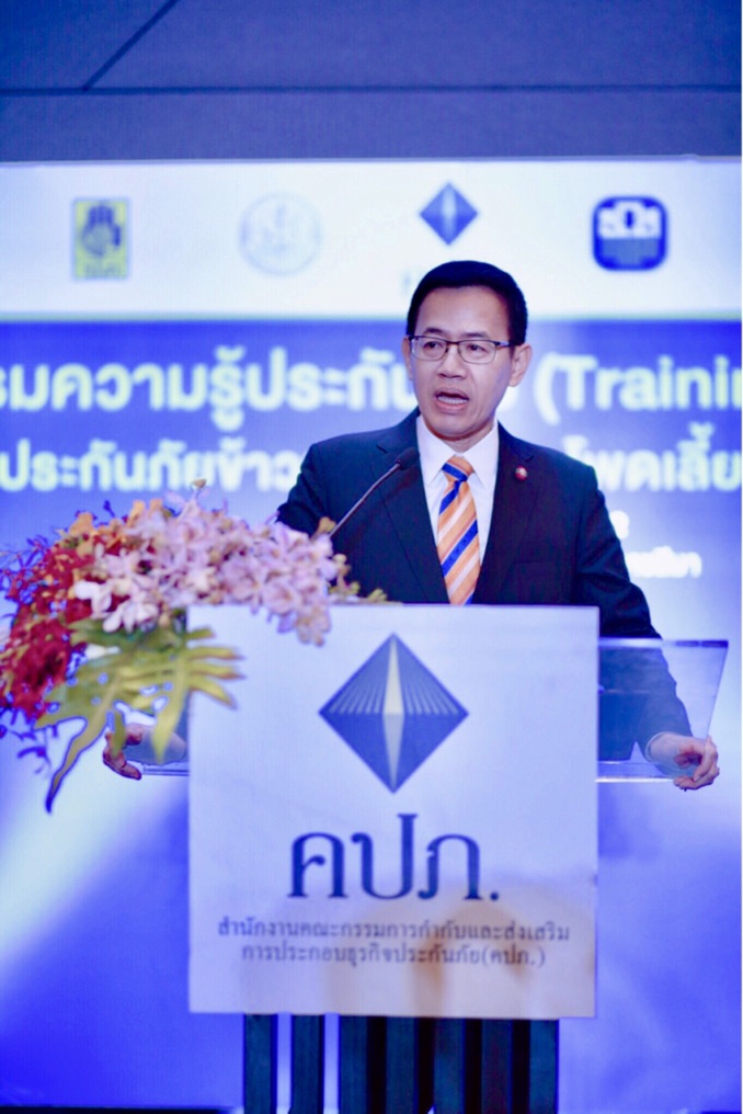 4 เมษายน 2562 : ดร.สุทธิพล ทวีชัยการ เลขาธิการคณะกรรมการกำกับและส่งเสริมการประกอบธุรกิจประกันภัย (คปภ.) เปิดเผยว่า เดินหน้าขับเคลื่อนโครงการ “Training for the Trainers” ประจำปี 2562 เพื่อเสริมสร้างความรู้ ความเข้าใจ ด้านการประกันภัยข้าวนาปีและข้าวโพดเลี้ยงสัตว์ให้แก่เจ้าหน้าที่ของหน่วยงานต่างๆ ที่เกี่ยวข้องที่จะไปเป็นผู้ถ่ายทอดความรู้ต่อให้กับเกษตรกร รวมทั้ง ผลักดันระบบการประกันภัย เข้าไปเป็นเครื่องมือสำคัญในการบริหารความเสี่ยงภัยธรรมชาติที่อาจจะเกิดขึ้นต่อเกษตรกร โดยกำหนดพื้นที่เป้าหมายครอบคลุมในทุกภูมิภาคทั่วประเทศ 10 จังหวัด ได้แก่ จังหวัดนครราชสีมา นครสวรรค์ ชัยนาท เพชรบูรณ์ น่าน เชียงราย ขอนแก่น อุบลราชธานี นครพนม และนครศรีธรรมราช