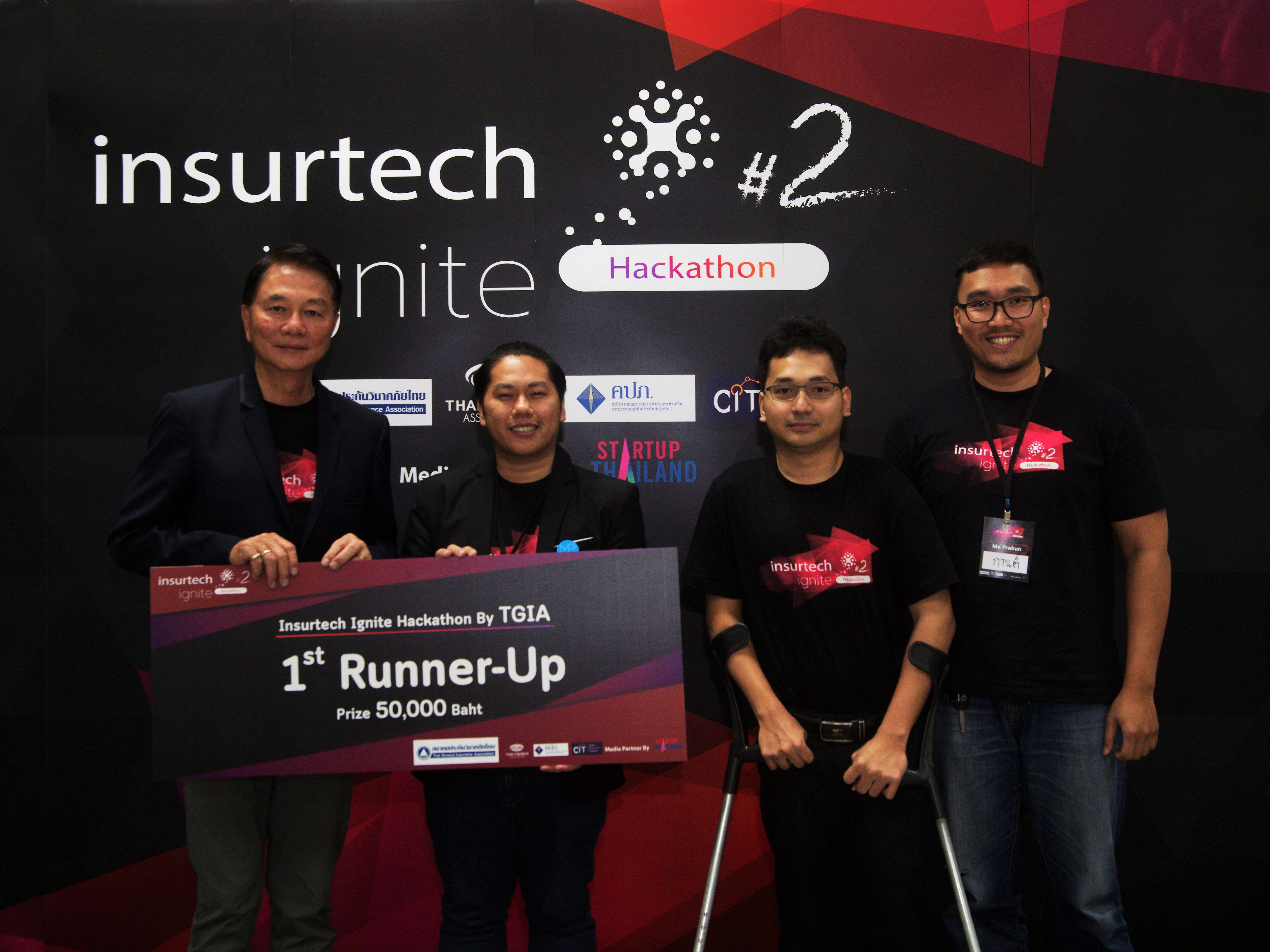 รางวัลรองชนะเลิศอันดับหนึ่ง ได้แก่ ทีม “Me Prakun” ผู้คิดค้นแอปพลิเคชันที่รวบรวมกรมธรรม์ประกันภัย จัดเก็บ แจ้งเตือน ที่สามารถต่อยอดไปสู่การต่ออายุ เลือกแผนใหม่ ๆ และไม่ต้องคอยพกบัตร ได้รับเงินรางวัล 50,000 บาท จาก สมาคมประกันวินาศภัยไทย