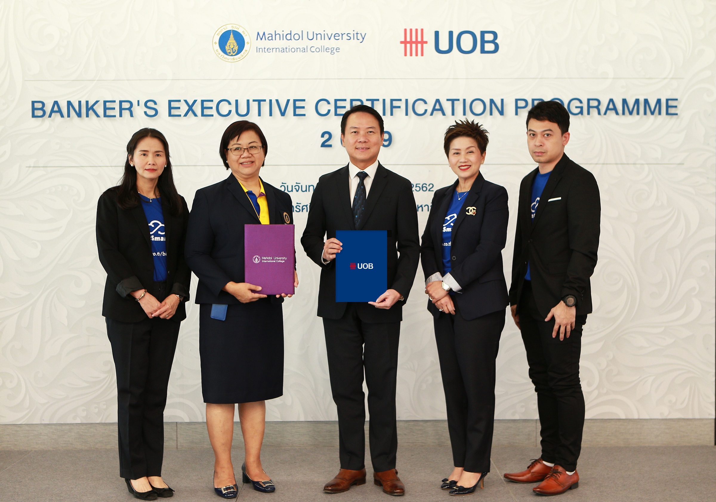 10 เม.ย. 2562 : ธนาคารยูโอบี (ไทย) นำโดย ตัน ชุน ฮิน กรรมการผู้จัดการใหญ่ (ที่ 3 จากซ้าย) สยุมรัตน์ มาระเนตร ผู้ช่วยกรรมการผู้จัดการใหญ่ ธุรกิจเอสเอ็มอี (ที่ 4 จากซ้าย) ประกาศความร่วมมือกับวิทยาลัยนานาชาติ มหาวิทยาลัยมหิดล ในการพัฒนาหลักสูตร Banker’s Executive Certification Programme เพิ่มพูนทักษะด้านดิจิทัลให้กับบุคคลากรที่ปรึกษาธุรกิจสำหรับกลุ่มลูกค้าเอสเอ็มอี ให้ก้าวทันการแข่งขันในยุคดิจิทัล