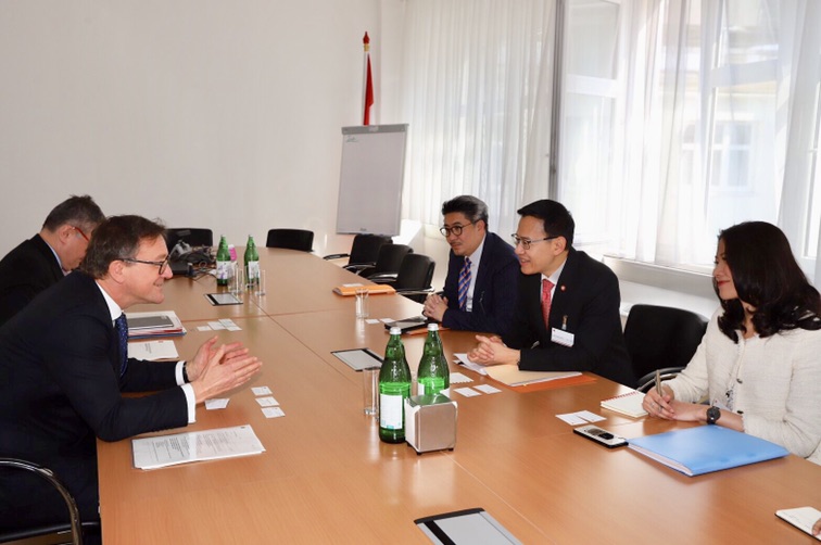อีกทั้ง ได้พบกับผู้บริหารระดับสูงของบริษัทประกันภัยชั้นนำในประเทศออสเตรีย คือ Generali Austria และ AXA XL Austria โดยเลขาธิการ คปภ. ได้หารือเกี่ยวกับพัฒนาการของตลาดประกันภัย และระบบประกันสุขภาพในทวีปยุโรป ซึ่งประกอบด้วย ความคุ้มครองขั้นพื้นฐานภายใต้ Social security ของภาครัฐ และการประกันสุขภาพของภาคเอกชน ซึ่งเป็นการเพิ่มเติมความคุ้มครองจากขั้นพื้นฐาน ทั้งนี้ ระบบประกันสุขภาพของประเทศออสเตรีย มีลักษณะพิเศษ คือ ทั้งบริษัทประกันชีวิตและบริษัทประกันวินาศภัย สามารถเสนอขายกรมธรรม์ประกันสุขภาพได้ แต่ต้องได้รับใบอนุญาตประกอบธุรกิจประกันสุขภาพเพิ่มเติม