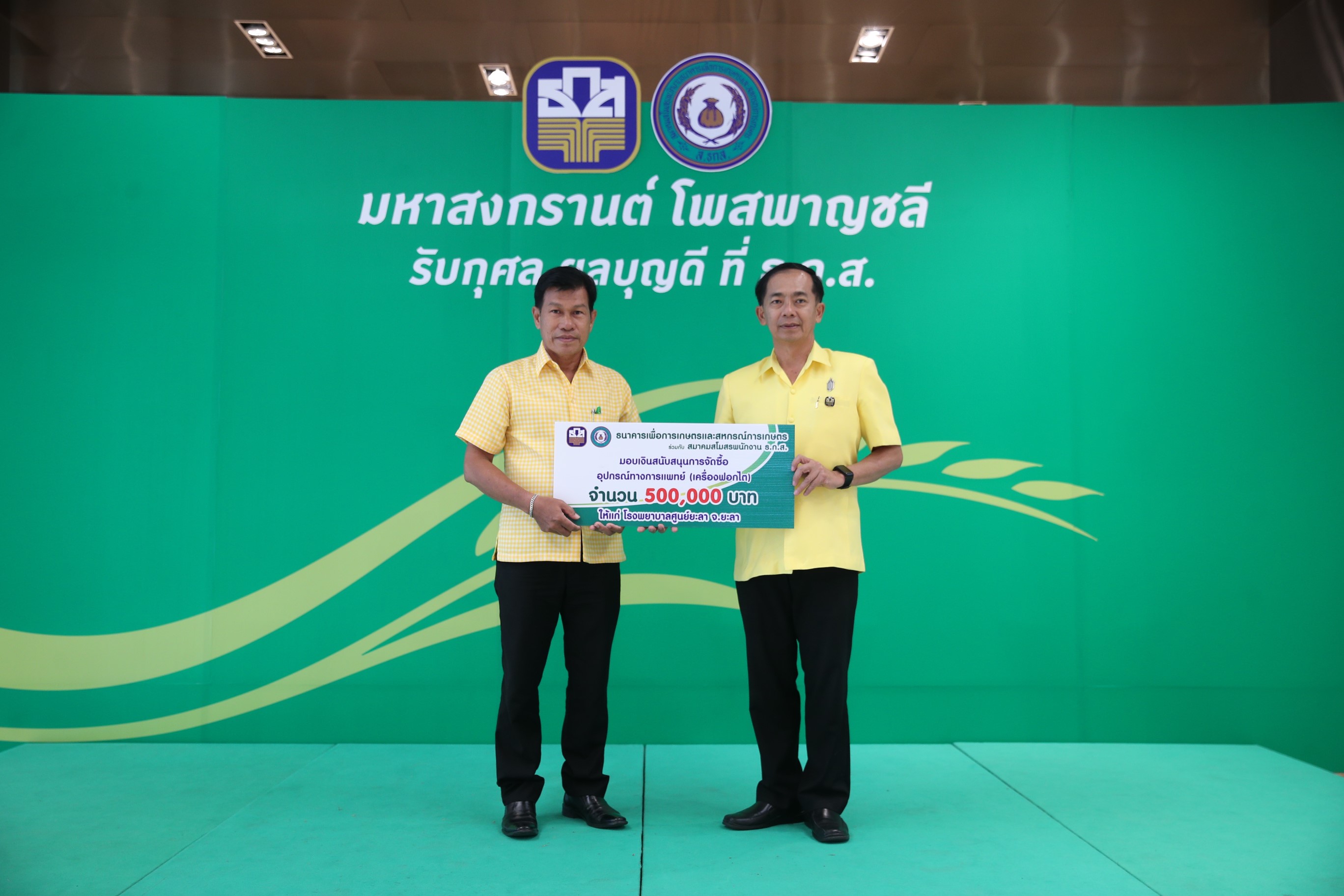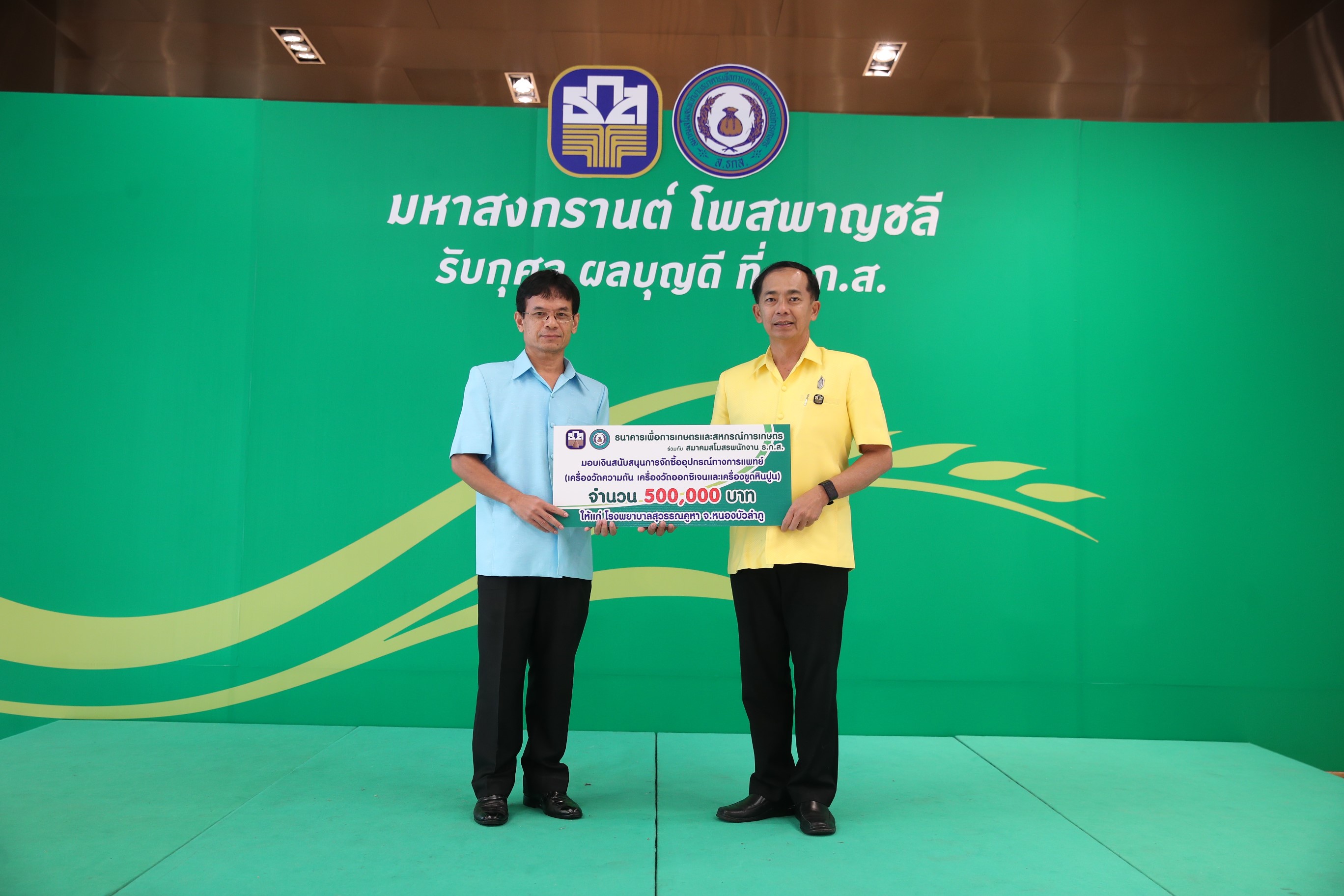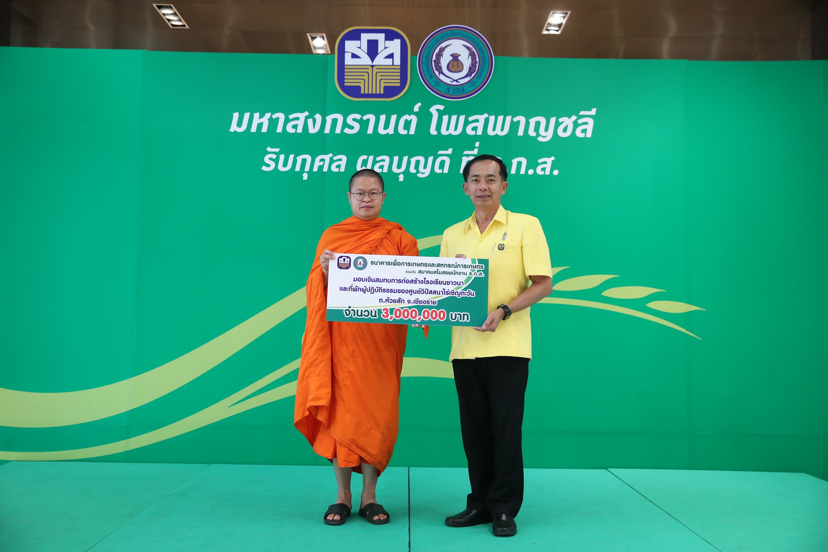 โดยจัดทำเป็นเหรียญทองคำ เหรียญเงิน เหรียญทองแดงรมดำ เหรียญเงินพร้อมเข็มกลัดเงิน และเหรียญทองแดงพร้อมเข็มกลัดทองแดง และได้เปิดให้มีการเช่าบูชาเหรียญดังกล่าวมาตั้งแต่เดือนพฤศจิกายน 2561 ซึ่งในวันนี้ ธ.ก.ส.พร้อมนำเงินรายได้จากการเช่าบูชาเหรียญศิลปะมงคล โพสพาญชลี ซึ่งเป็นพลังกุศลของพนักงาน ธ.ก.ส.ทั่วประเทศ ร่วมกับพลังศรัทธาจากเครือข่ายธนาคารทุกภาคส่วน มอบแก่โรงเรียนชาวนาพุทธเศรษฐศาสตร์ เพื่อต่อยอดและพัฒนาความรู้แก่ชาวนาในการผลิตอาหารแบบเกษตรอินทรีย์และการจัดสร้างที่พักผู้มาปฏิบัติธรรม ณ ไร่เชิญตะวัน จำนวน 3 ล้านบาท