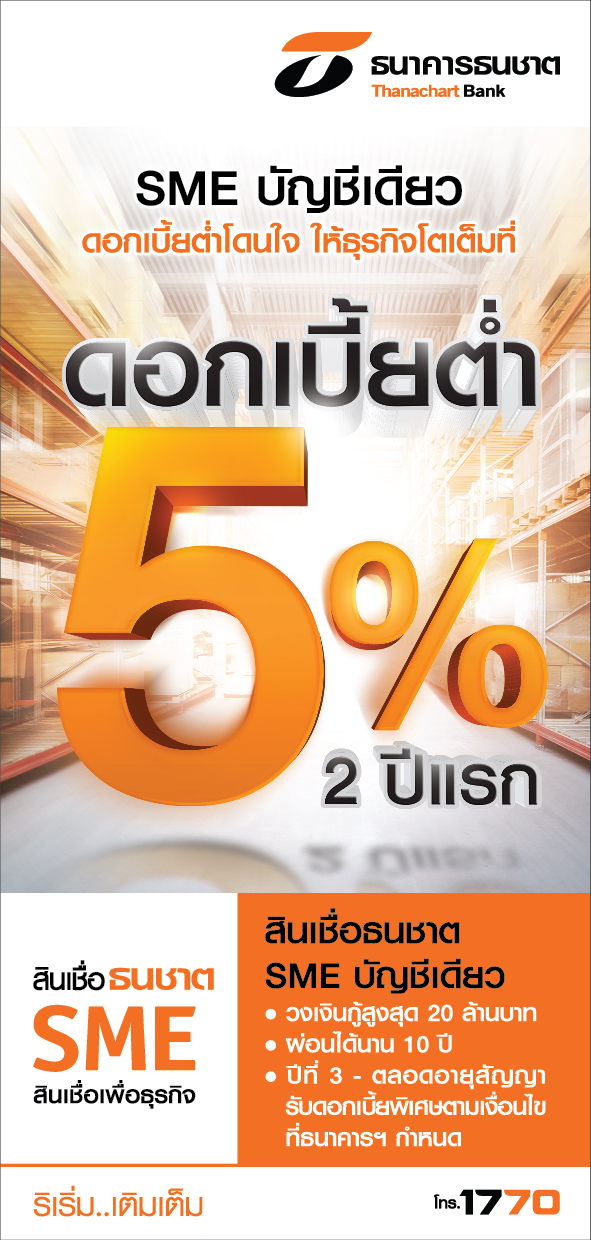 ผู้สนใจสมัครรับสิทธิพิเศษดอกเบี้ยสินเชื่อบัญชีเดียว 5% ต่อปี 2 ปีแรก หรือเข้าร่วมโครงการฟรีประเมินหลักประกัน สอบถามเพิ่มเติมที่บูธธนชาต วันที่ 30 เม.ย. 2562 ที่เมืองทองธานี ซึ่งมีทีมให้คำปรึกษาด้านสินเชื่อพร้อมบริการ อนุมัติง่าย สะดวก รวดเร็ว พร้อมรับของที่ระลึก (จำนวนจำกัด) หรือสอบถามที่ธนาคารธนชาตทุกสาขาทั่วประเทศ โทร.1770 หรือเว็บไซต์ ww.thanachartbank.co.th ![]()