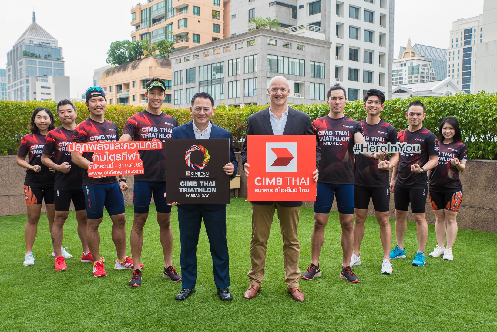 22 พฤษภาคม 2562 : ประภาส ทองสุข รองกรรมการผู้จัดการใหญ่ สื่อสารองค์กร ธนาคาร ซีไอเอ็มบี ไทย และ เจอร์เกน สวินเคลส์ ผู้จัดการทั่วไป ซีฟิฟตี้ไฟว์ อีเวนท์ เชิญชวนทุกคนปลุกพลังและความกล้าในตัวเอง สมัครแข่งขันการแข่งขันไตรกีฬารายการ ‘CIMB THAI TRIATHLON FOR ASEAN DAY 2019’ ครั้งที่ 2 ภายใต้แนวคิด ‘Hero In You ทุกคนต่างเป็นฮีโร่ของตัวเองได้’ ระหว่างวันที่ 3 – 4 ส.ค.62 ณ พัฒนากอล์ฟคลับแอนด์รีสอร์ท อ.ศรีราชา จ.ชลบุรี
