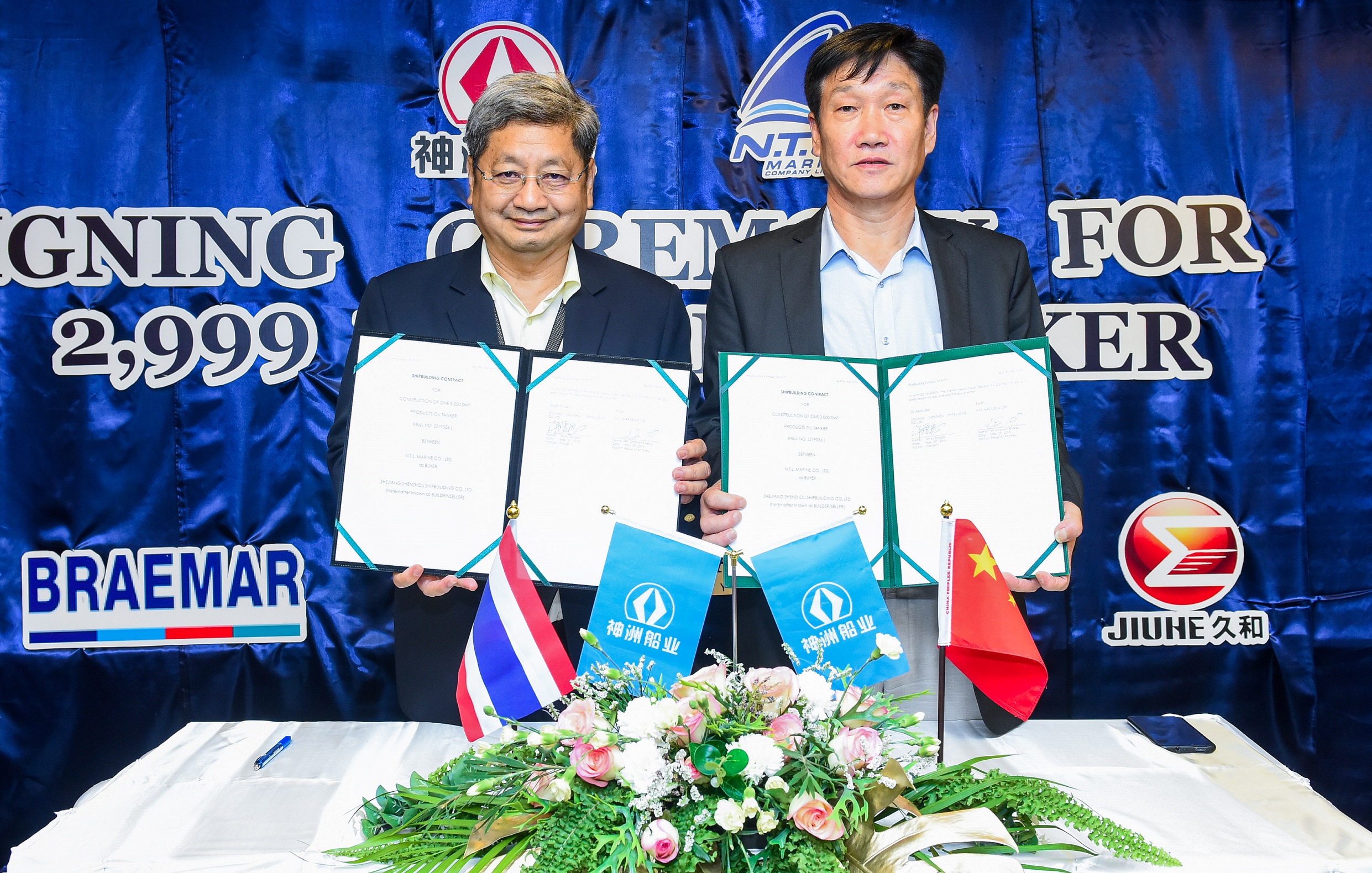 23 พฤษภาคม 2562 : นายชาญวิทย์ อนัคกุล (ซ้าย) ประธานเจ้าหน้าที่บริหาร บริษัท พริมา มารีน จำกัด (มหาชน) หรือ PRM ร่วมลงนามกับ Mr. Xu, President of Zhejiang Shenzhou Ship Building Company Limited ในสัญญาว่าจ้างต่อเรือขนส่งน้ำมันลำใหม่ ขนาด 3,000 DWT เพื่อเสริมศักยภาพในการขนส่งน้ำมันฯ ภายในประเทศที่มีแนวโน้มเติบโตอย่างต่อเนื่อง โดยคาดว่าจะแล้วเสร็จในปี 2563 ![]()