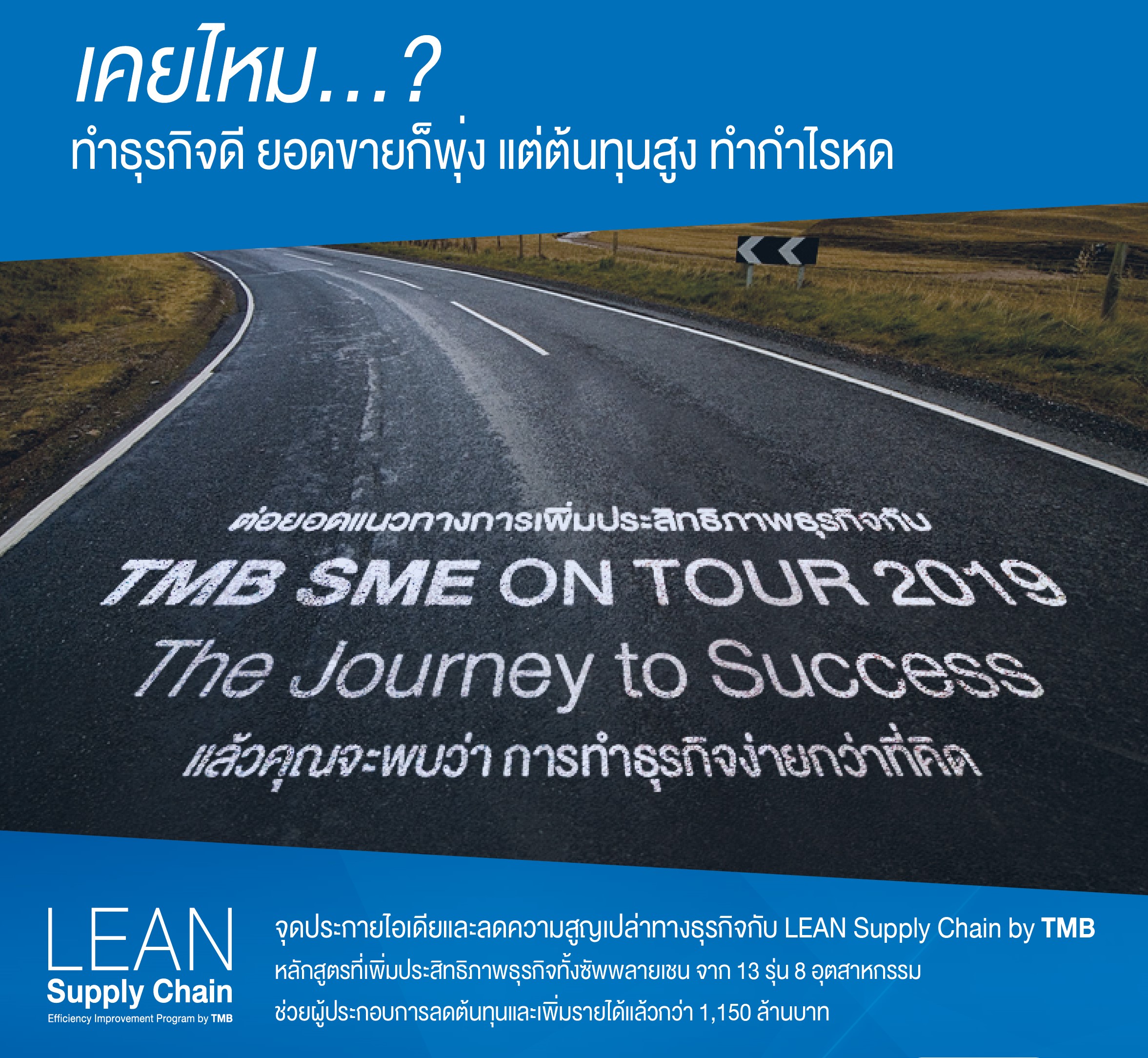 สำหรับโครงการ LEAN Supply Chain by TMB คือหลักสูตรที่ช่วยเพิ่มประสิทธิภาพธุรกิจทั้งห่วงโซ่อุปทาน ผ่านเทคนิค Lean Six Sigma เป็นกิจกรรมการจัดอบรมฟรีสำหรับผู้ประกอบการเอสเอ็มอี โดยตลอด 6 ปีที่ผ่านมาได้จัดอบรมในหลักสูตร LEAN Supply Chain Master ไปแล้วถึง 13 รุ่น 8 อุตสาหกรรม และมีกว่า 100 โปรเจคที่สามารถลดต้นทุนและเพิ่มรายได้แล้วรวมกว่า 1,150 ล้านบาท ![]()