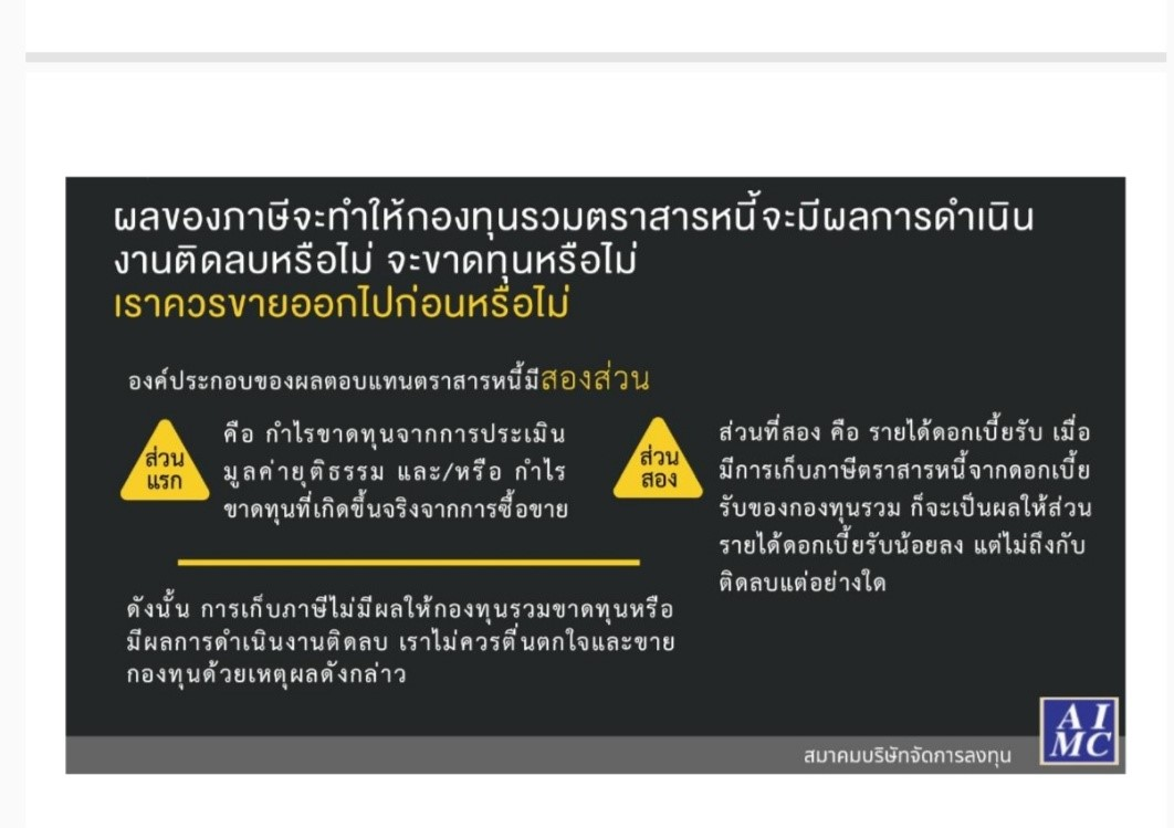 คราวนี้ลองมาดูคำแถลงการณ์เกี่ยวกับเรื่องนี้ กับนายกสมาคมบริษัทจัดการลงทุน (AIMC) กันดูบ้าง