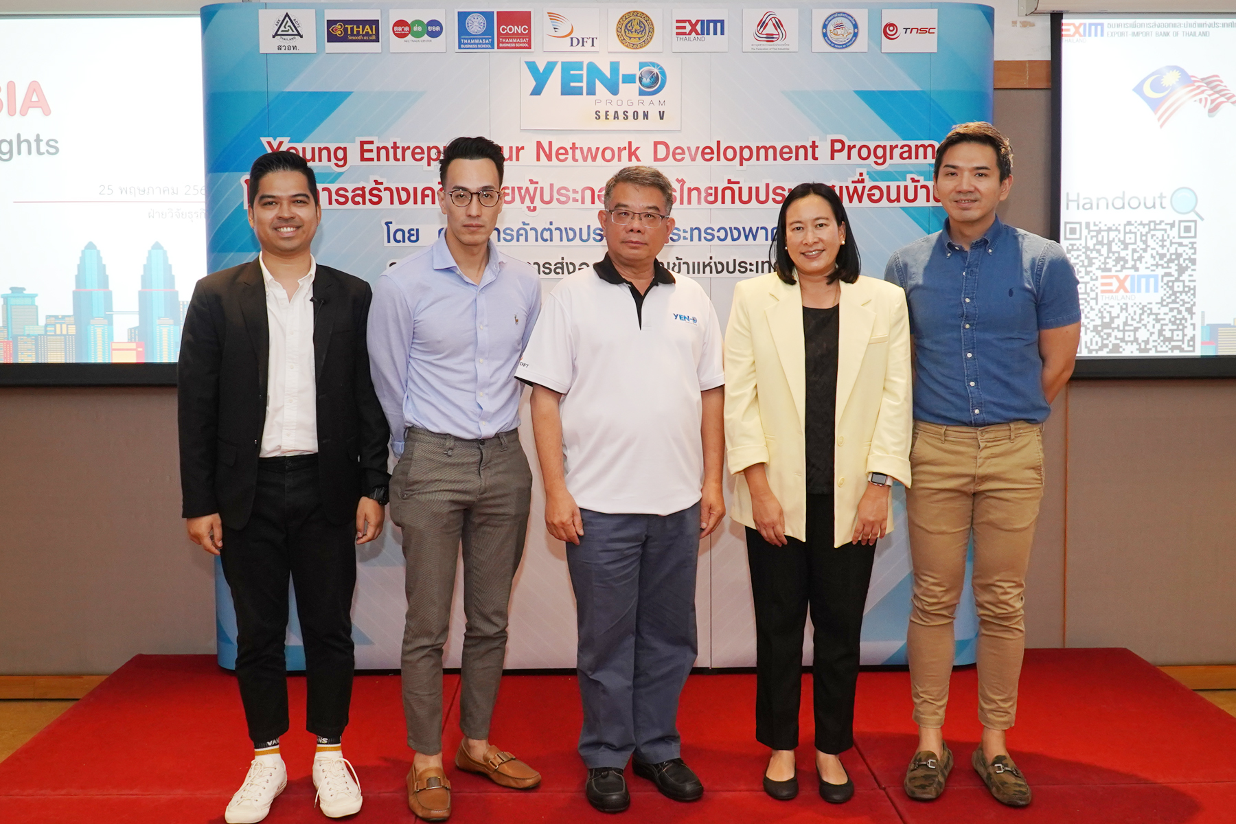 29 พฤษภาคม 2562 : นายอดุลย์ โชตินิสากรณ์ (กลาง) อธิบดีกรมการค้าต่างประเทศ กระทรวงพาณิชย์ และกรรมการ ธนาคารเพื่อการส่งออกและนำเข้าแห่งประเทศไทย (EXIM BANK) เป็นประธานกล่าวเปิดการอบรมผู้ประกอบการไทยภายใต้โครงการสร้างเครือข่ายผู้ประกอบการรุ่นใหม่ของไทยกับประเทศเพื่อนบ้าน รุ่นที่ 5 (Young Entrepreneur Network Development Plus Program: YEN-D Season V) ณ EXIM BANK สำนักงานใหญ่ โดย EXIM BANK ร่วมให้ความรู้เกี่ยวกับแนวโน้มเศรษฐกิจประเทศมาเลเซียและบริการทางการเงินของธนาคารให้แก่ผู้ประกอบการไทยที่สนใจค้าขายหรือลงทุนกับมาเลเซีย เมื่อเร็วๆ นี้ ![]()