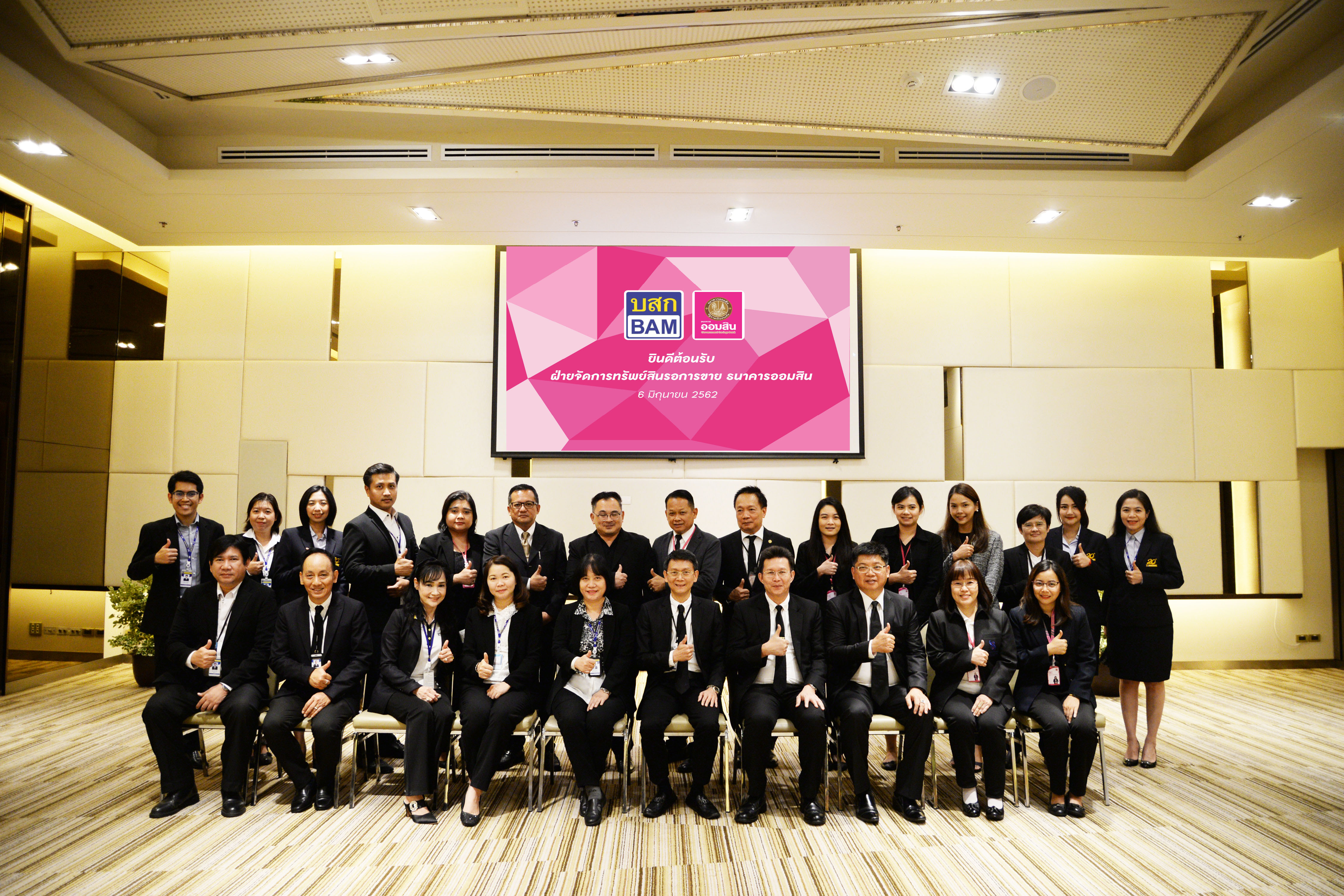 10 มิถุนายน 2562 : สมบุญ เรืองสุรเกียรติ รองกรรมการผู้จัดการใหญ่ บริษัทบริหารสินทรัพย์ กรุงเทพพาณิชย์ จำกัด (มหาชน) หรือ BAM พร้อมคณะผู้บริหาร ให้การต้อนรับ ไพโรจน์ สว่างตระกูล ผู้ตรวจการธนาคารออมสิน กลุ่มปฏิบัติการ และฝ่ายจัดการทรัพย์สินรอการขาย ธนาคารอาคารออมสิน ในโอกาสเยี่ยมชมและศึกษาดูงานด้านบริหารจัดการทรัพย์สินรอการขายของ BAM ณ สำนักงานใหญ่ BAM เมื่อวันที่ 6 มิถุนายนที่ผ่านมา ![]()