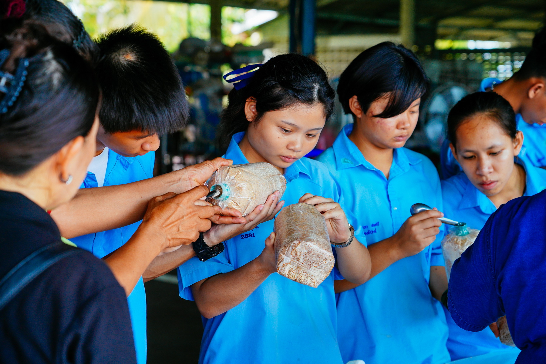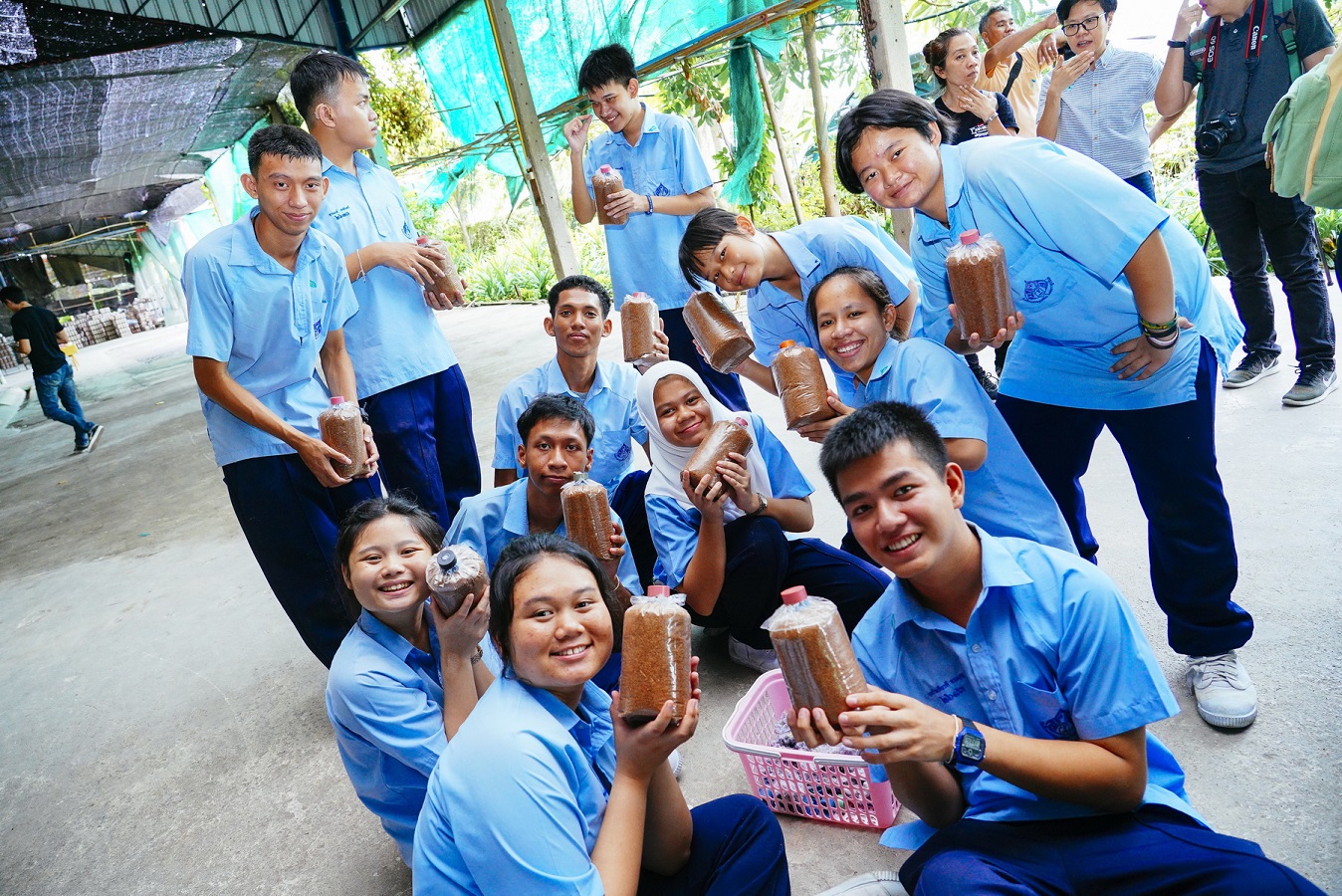 สำหรับหลักสูตรการเรียนการสอน รวม 12 สัปดาห์ เริ่มตั้งแต่การสร้างโรงเรือนเพาะเห็ด เรียนรู้ทฤษฎีการเพาะเห็ดและฝึกปฏิบัติจริงรวมไปถึงนำความรู้ไปพัฒนาต่อยอด สร้างอาชีพ สร้างรายได้ ตลอดจนการบริหารการใช้จ่ายเพื่อการใช้ชีวิตที่มีความสุขอย่างยั่งยืน อีกทั้งรู้จักถ่ายทอดแบ่งปันให้กับสังคม ทั้งนี้ภายในงานแถลงข่าวน้องๆ ยังได้เข้าร่วมเวิร์คช้อปการเพาะเห็ดตั้งแต่ต้นจนจบกระบวนการอีกด้วย ณ ฟาร์มเห็ดโพธิ์ทอง จังหวัดนนทบุรี เมื่อเร็วๆ นี้ ![]()