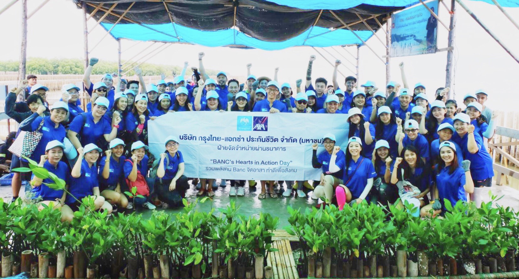 14 มิถุนายน 2562 : บมจ.กรุงไทย-แอกซ่า ประกันชีวิต นำโดย ชัยณรงค์ เอื้อสิทธิชัย ประธานเจ้าที่บริหาร ฝ่ายจัดจำหน่ายผ่านธนาคาร (กลาง) พร้อมด้วยพนักงานจิตอาสาฝ่ายขาย ภูมิภาคนครหลวง 2 ร่วมจัดกิจกรรม “BANC’s Hearts in Action Day ครั้งที่ 2” หรือกิจกรรมจิตอาสาจากใจของทีมฝ่ายจัดจำหน่ายผ่านธนาคารเพื่อสังคมไทยน่าอยู่ โดยครั้งนี้ ผู้บริหารและพนักงานจิตอาสาได้ลงพื้นที่ ณ บริเวณป่าชายเลนบางขุนเทียน เพื่อเข้าไปช่วยในการฟื้นฟูระบบนิเวศจากปัญหาน้ำทะเลกัดเซาะแนวชายฝั่ง รวมทั้งเพื่อช่วยรักษาความสมดุลระบบนิเวศป่าชายเลนบางขุนเทียนให้คงไว้ ทั้งนี้ เพื่อเป็นการตอกย้ำเป้าหมายหลักของบริษัท ฯ คือ การให้โอกาสทุกคนได้มีชีวิตที่ดีขึ้นตามใจปรารถนา ![]()