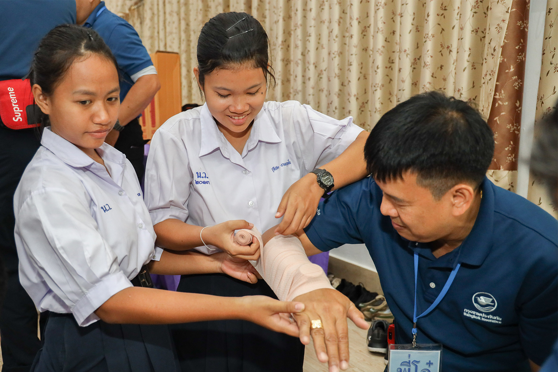 บริษัท กรุงเทพประกันภัย จำกัด (มหาชน) หรือ BKI จัดกิจกรรมส่งเสริมความปลอดภัย ห่วงใยเยาวชน ให้แก่นักเรียนโรงเรียนหนองน้ำส้มวิทยาคม โดยมีนายสุชาติ จิรายุวัฒน์ ผู้อำนวยการ ธุรกิจสาขาและการร่วมทุน นำพนักงานทีมอาสาบรรเทาภัย (Emergency Response Team: ERT) ของบริษัทฯ ฝึกอบรมให้ความรู้ด้านการปฐมพยาบาลเบื้องต้น สาธิตการปั๊มหัวใจ (CPR) เพื่อช่วยชีวิตผู้ป่วยที่หมดสติ และสาธิตการดับเพลิง ให้แก่นักเรียนระดับชั้นมัธยมศึกษาตอนปลายที่ 4-5 จำนวน 53 คน เพื่อให้นักเรียนมีความรู้ขั้นพื้นฐานในการช่วยเหลือผู้ประสบเหตุในกรณีฉุกเฉิน มีความพร้อมสำหรับการระงับเหตุเบื้องต้นได้อย่างทันท่วงที และยังสามารถนำความรู้ที่ได้รับไปช่วยเหลือผู้อื่นได้