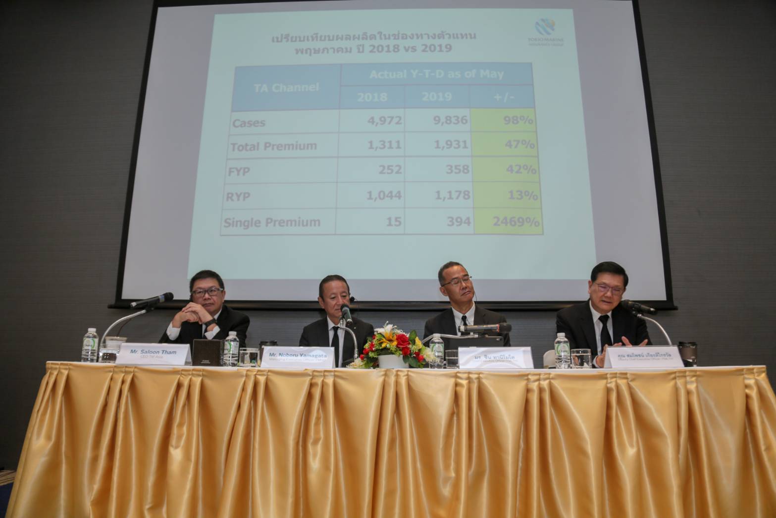 ประเทศไทย, 17 มิถุนายน 2562 : กลุ่มโตเกียวมารีนประกาศแต่งตั้ง มร.โนโบรุ ยามากาตะ (Mr. Noboru Yamagata) ดำรงตำแหน่ง กรรมการบริหาร โตเกียวมารีน โฮลดิ้ง ดูแลธุรกิจภูมิภาคเอเชีย รวมทั้งประเทศจีน และเอเชียตะวันออกเฉียงใต้ ในเดือนเมษายนที่ผ่านมา และ มร.ซาลูน ธรรม (Mr. Saloon Tham) ดำรงตำแหน่ง ประธานเจ้าหน้าที่บริหาร โตเกียวมารีน เอเชีย เมื่อเดือนเมษายนของปีนี้เช่นกัน โดยมีหน้าที่ความรับผิดชอบดูแลธุรกิจในภูมิภาคเอเชียทั้งหมดของโตเกียวมารีนกรุ๊ป