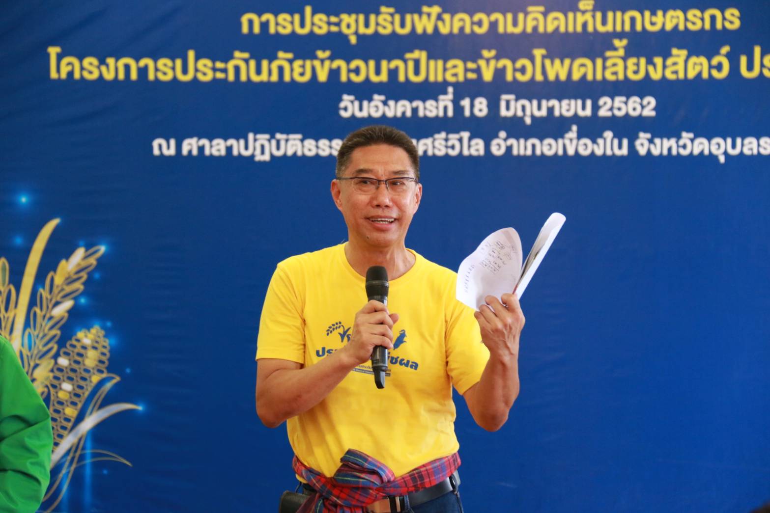 18 มิถุนายน 2562 : กี่เดช อนันต์ศิริประภา ผู้อำนวยการบริหาร สมาคมประกันวินาศภัยไทย ร่วมลงพื้นที่ให้ความรู้และรับฟังความคิดเห็นเกษตรกรผู้ปลูกข้าวนาปี อำเภอเขื่องใน จังหวัดอุบลราชธานี จำนวนกว่า 250 คน ตามโครงการประกันภัยข้าวนาปีและข้าวโพดเลี้ยงสัตว์ ประจำปี 2562 ณ ศาลาปฏิบัติธรรมวัดทุ่งศรีวิไล อำเภอเขื่องใน จังหวัดอุบลราชธานี ![]()