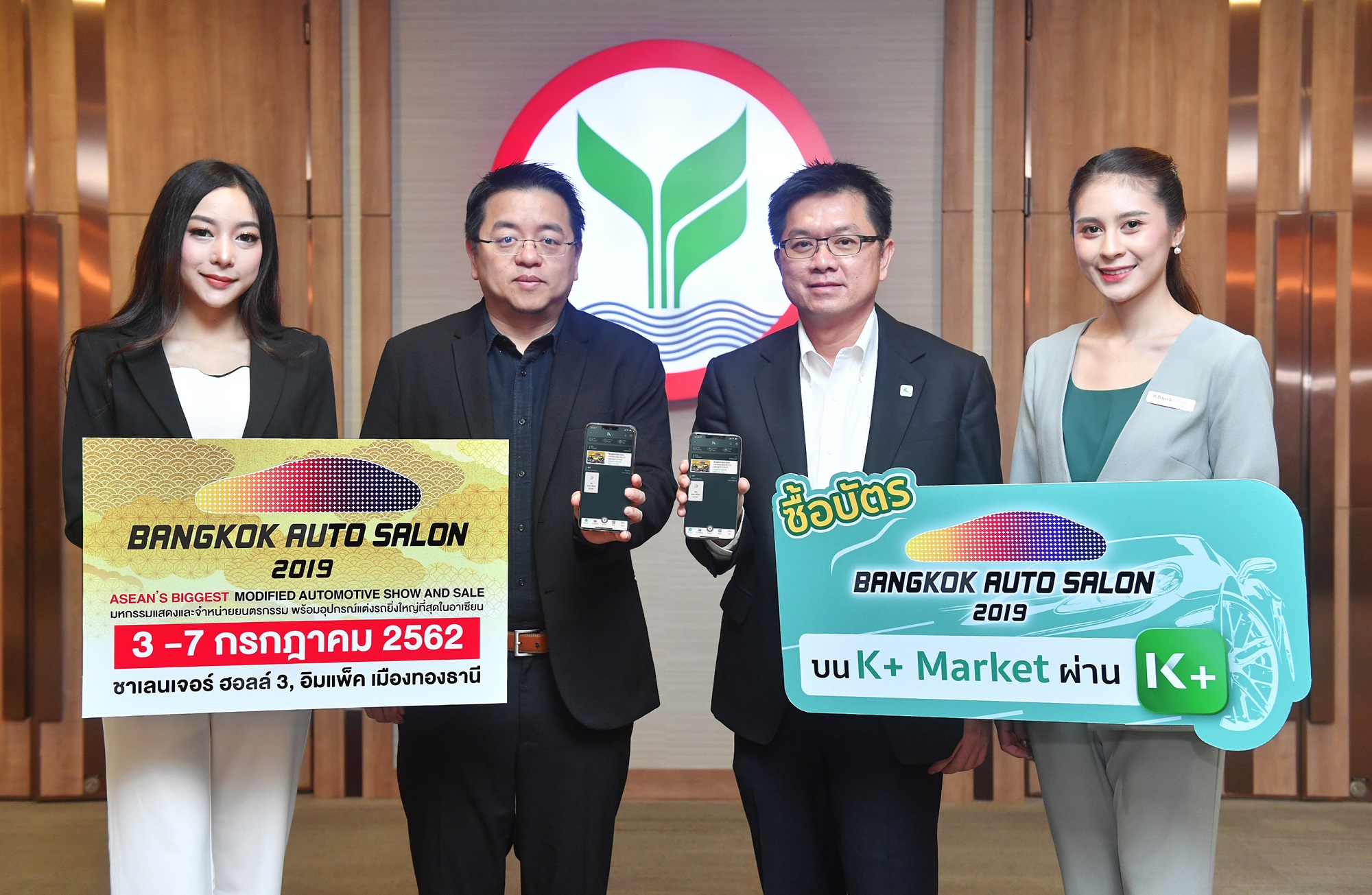 20 มิถุนายน 2562 : ทวี ธีระสุนทรวงศ์ (ที่ 2 จากขวา) รองกรรมการผู้จัดการ ธนาคารกสิกรไทย และ วิลักษณ์ โหลทอง (ที่ 2 จากซ้าย) ประธานกรรมการบริหาร บริษัท สยามสปอร์ต ซินดิเคท จำกัด (มหาชน) ประธานการจัดงานบางกอก อินเตอร์เนชั่นแนล ออโต ซาลอน ร่วมจัดโปรโมชั่นพิเศษสำหรับลูกค้าธนาคารกสิกรไทย ซื้อบัตรเข้าร่วมงาน บางกอก อินเตอร์เนชั่นแนล ออโต ซาลอน 2019 ผ่าน K PLUS Market บนแอป K PLUS เพียงใบละ 80 บาท จากราคาปกติ 100 บาท หรือใช้คะแนนสะสมบัตรเครดิตกสิกรไทยทุก 800 คะแนน แลกอีทิกเก็ตเข้าชมงานได้ 1 ใบ เพียงโชว์ QR Code ที่ได้จากแอปฯ ณ ชาเลนเจอร์ฮอล์ 3 อิมแพค เมืองทองธานี ตั้งแต่วันที่ 14 มิ.ย. 62 – 7 ก.ค. 62 นี้ ![]()
