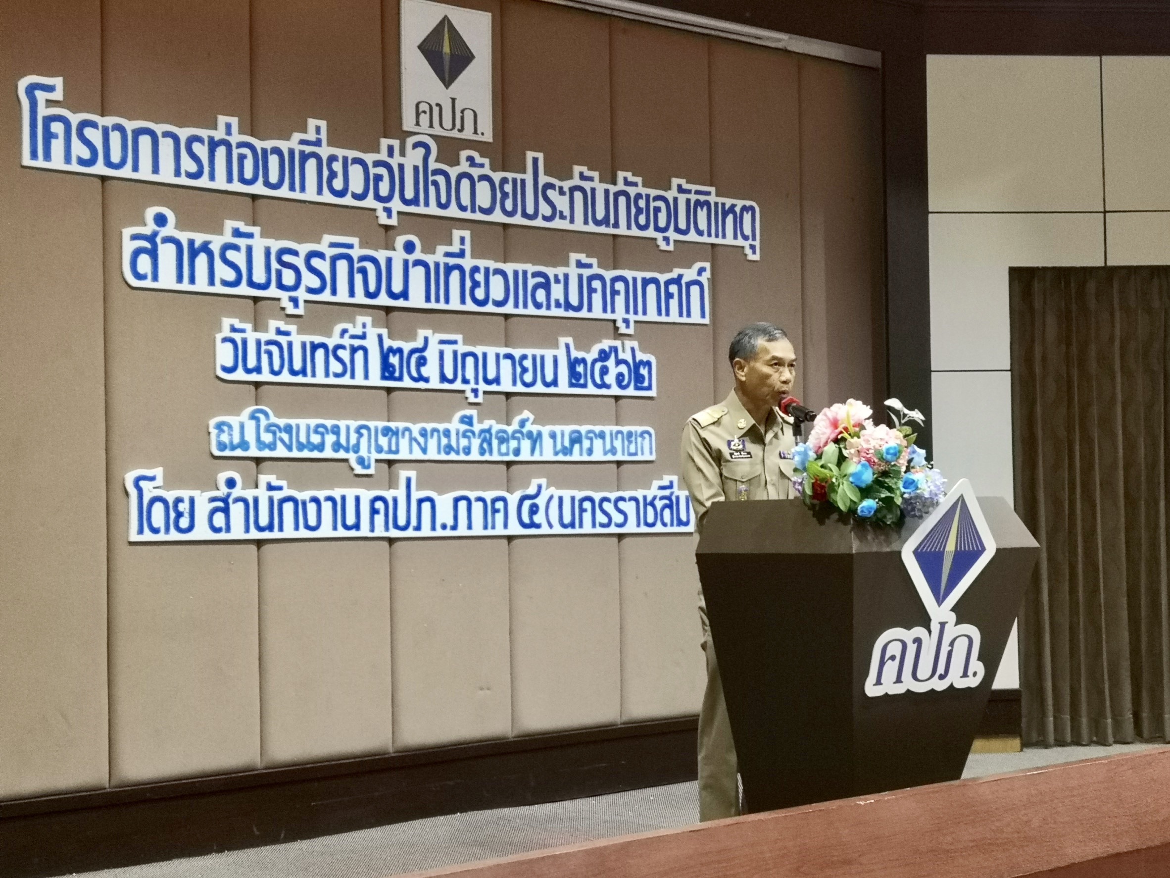 24 มิถุนายน 2562 : ดร.สุทธิพล ทวีชัยการ เลขาธิการคณะกรรมการกำกับและส่งเสริมการประกอบธุรกิจประกันภัย (เลขาธิการ คปภ.) เปิดเผยว่า เมื่อวันที่ 24 มิถุนายน 2562 เลขาธิการ คปภ. ได้เป็นประธานเปิดโครงการ “ท่องเที่ยวอุ่นใจด้วยประกันภัยอุบัติเหตุสำหรับธุรกิจนำเที่ยวและมัคคุเทศก์” ณ โรงแรมภูเขางาม รีสอร์ท อำเภอเมือง จังหวัดนครนายก โดยได้รับเกียรติจาก นายณัฐพงศ์ ศิริชนะ ผู้ว่าราชการจังหวัดนครนายก กล่าวต้อนรับและเยี่ยมชมบูธนิทรรศการ ด้านประกันภัย ซึ่งจัดโดยสำนักงาน คปภ. ภาค 4 (นครราชสีมา) ร่วมกับสำนักงาน คปภ. จังหวัดนครนายก