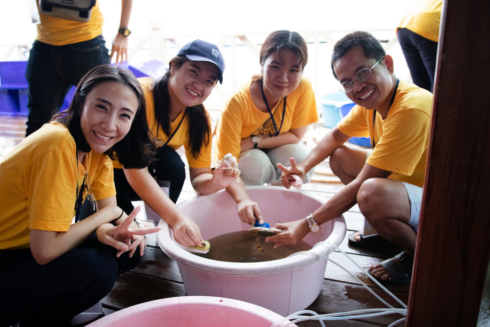 ตลอดช่วงบ่าย ณ ศูนย์ศึกษาการพัฒนาอ่าวคุ้งกระเบน อัดแน่นด้วยกิจกรรมสนุกๆ ที่เหล่านิสิตได้ลงมือทำเป็นครั้งแรก สอดแทรกความรู้ ไม่ว่าจะเป็นการปล่อยปูดำจำนวน 20 กิโลกรัมลงทะเล การเขี่ยไข่ปูเพื่อเพาะพันธุ์ปูสู่ธนาคารปู การซั้งเชือกเพื่อเป็นที่อยู่อาศัยของสัตว์น้ำ การเพาะชำต้นกล้าป่าบก และเดินชมป่าชายเลนที่ถูกพัฒนาจนอุดมสมบูรณ์ในปัจจุบัน