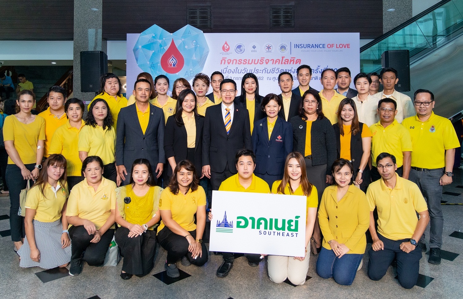 3 กรกฎาคม 2562 : ภฤตยา สัจจศิลา กรรมการผู้จัดการ บมจ.อาคเนย์ประกันชีวิต พร้อมด้วย มนตรี วงศ์ท่าเรือ รองกรรมการผู้จัดการ บมจ.อาคเนย์ประกันภัย นำทีมตัวแทนและพนักงานอาคเนย์บริจาคโลหิตเพื่อช่วยเหลือชีวิตเพื่อนมนุษย์และเพิ่มปริมาณโลหิตสำรอง เนื่องในวันประกันชีวิตแห่งชาติ ครั้งที่ 20 ประจำปี 2562 ภายใต้แนวคิด “ประกันชีวิต ประกันอนาคต” โดยได้รับเกียรติจาก ดร.สุทธิพล ทวีชัยการ เลขาธิการคณะกรรมการกำกับและส่งเสริมการประกอบธุรกิจประกันภัย พร้อมคณะกรรมการสมาคมประกันชีวิตไทย สมาคมตัวแทนประกันชีวิตและที่ปรึกษาการเงิน ร่วมถ่ายภาพเป็นที่ระลึก ณ ศูนย์บริการโลหิตแห่งชาติ สภากาชาดไทย ถนนอังรีดูนังต์ ![]()