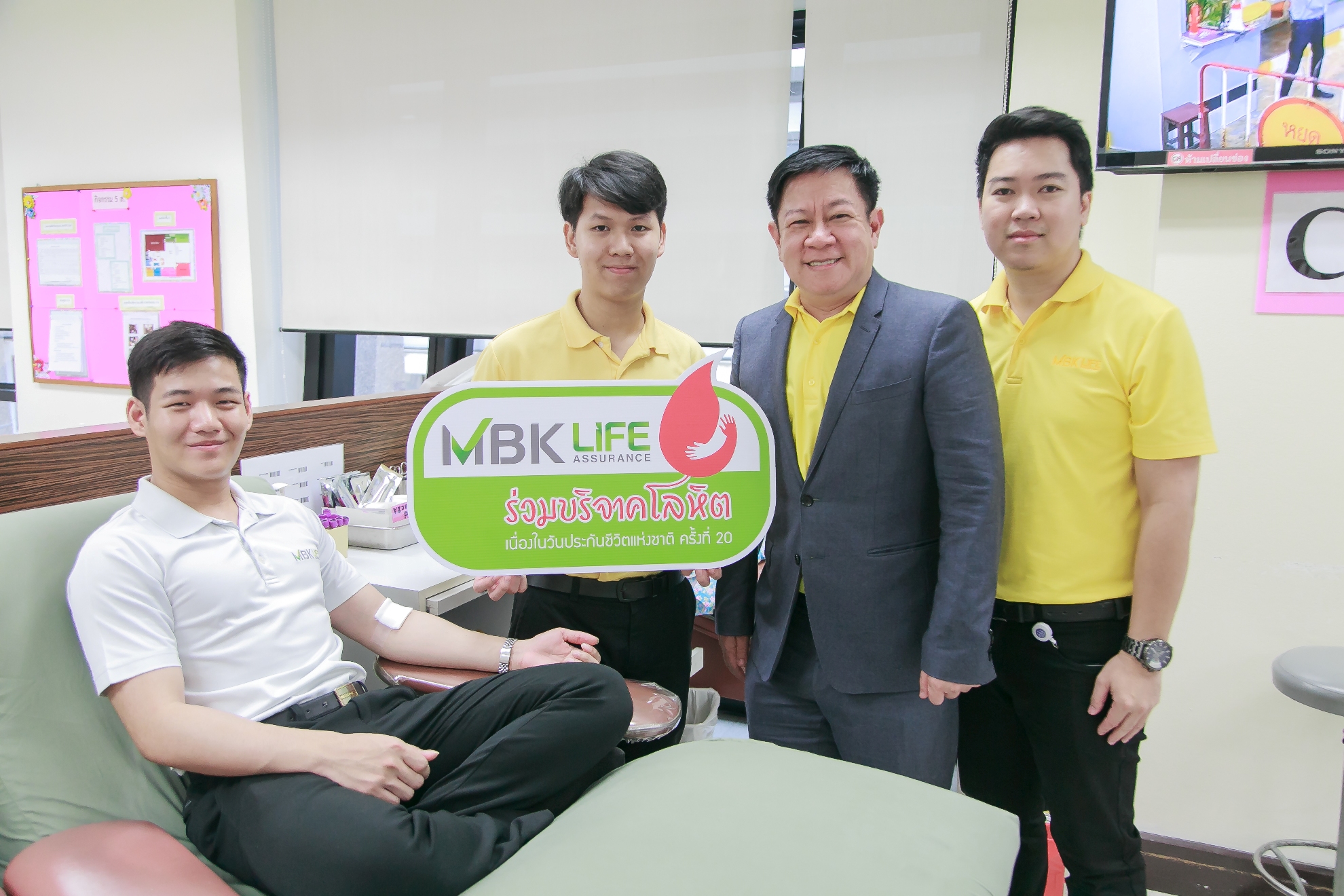 4 กรกฎาคม 2562 : พิบูล วศินชัชวาล กรรมการผู้จัดการ (แถวกลาง ที่ 1 จากซ้าย) บริษัท เอ็ม บี เค ไลฟ์ ประกันชีวิต จำกัด (มหาชน) – MBK LIFE นำตัวแทนพนักงานจิตอาสา ร่วมบริจาคโลหิต เนื่องในวันประกันชีวิตแห่งชาติ ครั้งที่ 20 ประจำปี 2562 เป็นการรวมพลังแสดงความสามัคคีของบุคลากรในองค์กรและในธุรกิจประกันชีวิต ร่วมกันทำความดีเพื่อช่วยเหลือตอบแทนสังคม ช่วยชีวิตเพื่อนมนุษย์ด้วยการบริจาคโลหิต นับเป็นส่วนหนึ่งของกิจกรรมสาธารณกุศล อันเป็นธรรมเนียมปฏิบัติของภาคธุรกิจประกันชีวิตที่จัดขึ้นอย่างต่อเนื่องทุกปี งานดังกล่าว จัดขึ้น ณ ศูนย์บริการโลหิตแห่งชาติ สภากาชาดไทย เมื่อเร็วๆ นี้ ![]()