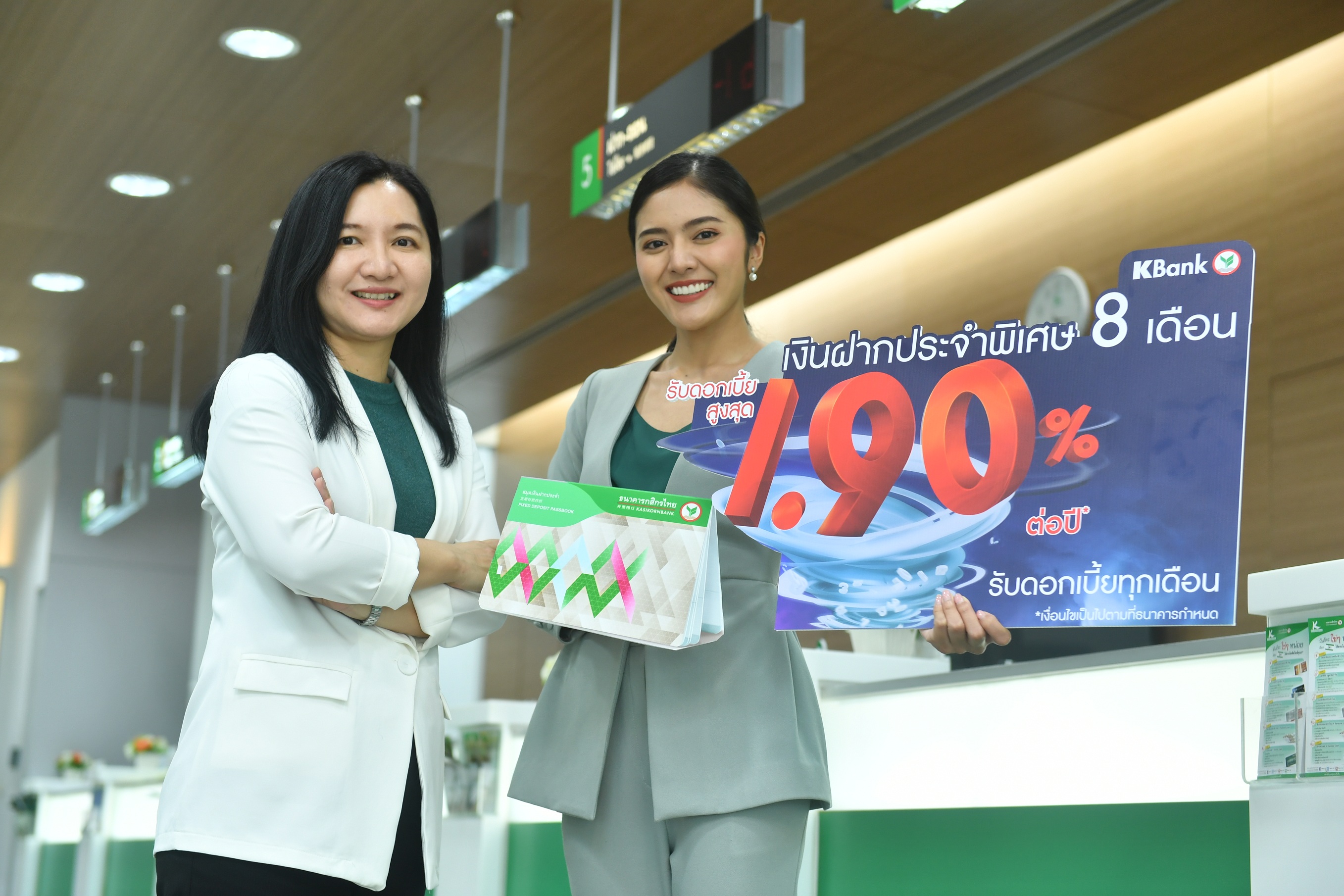 10 กรกฎาคม 2562 : นิศานาถ อู่วุฒิพงษ์ ผู้ช่วยกรรมการผู้จัดการ ธนาคารกสิกรไทย เปิดตัวแคมเปญ “เงินฝากประจำพิเศษ 8 เดือน” ให้ดอกเบี้ยสูงสุด 1.90% ต่อปี พร้อมจ่ายดอกเบี้ยทุกเดือน สำหรับผู้ที่ต้องการออมเงินและได้รับผลตอบแทนที่คุ้มค่า ลูกค้าที่ฝากขั้นต่ำ 200,000 บาท รับดอกเบี้ย 1.75% ต่อปี พิเศษเมื่อฝากตั้งแต่ 10 ล้านบาทขึ้นไป รับดอกเบี้ย 1.90% ต่อปี เปิดบัญชีได้ตั้งแต่วันนี้ถึง 2 สิงหาคม 2562 ที่ธนาคารกสิกรไทยทุกสาขา เงื่อนไขเป็นไปตามที่ธนาคารกำหนด