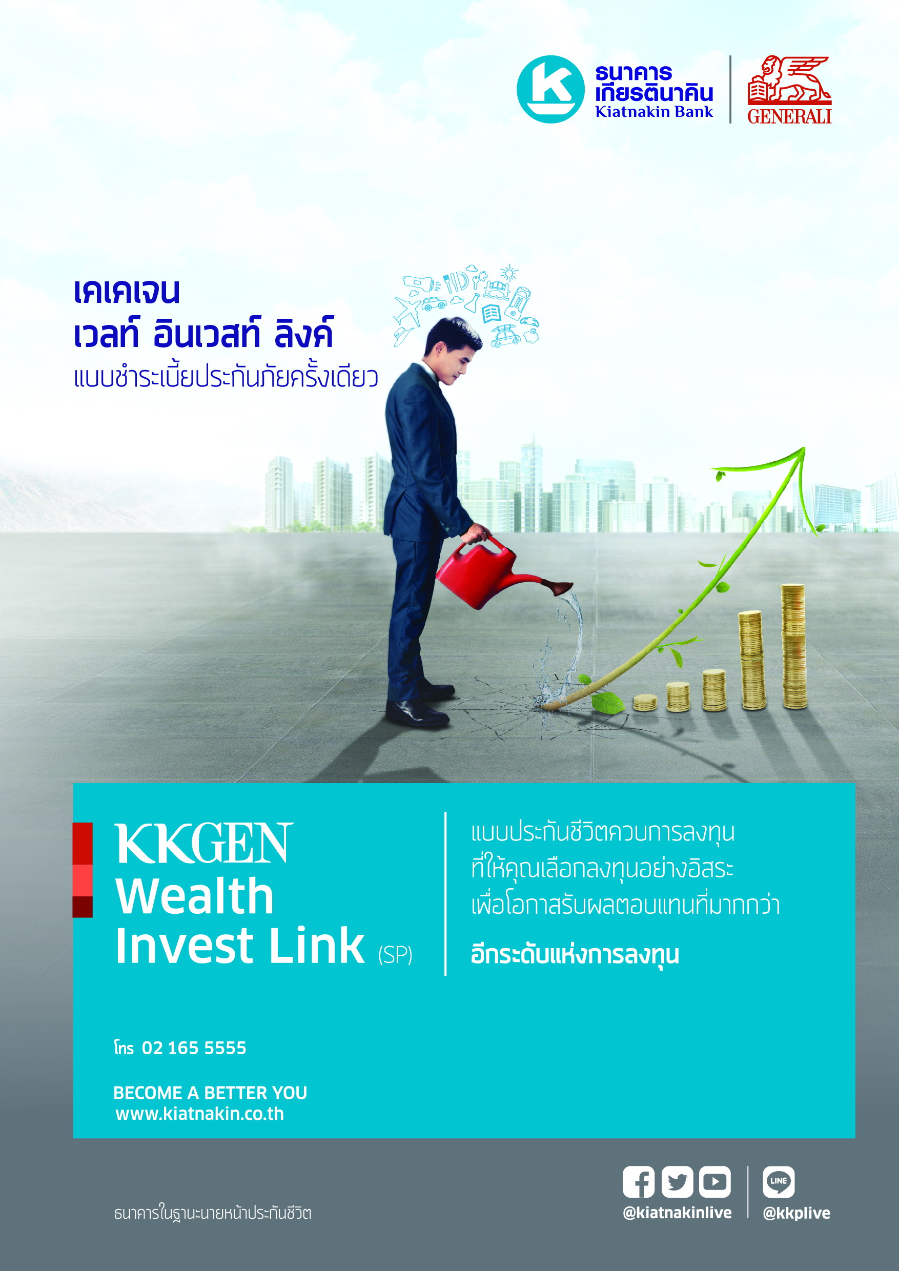 นายบัณฑิต เจียมอนุกูลกิจ ประธานเจ้าหน้าที่บริหาร บริษัท เจนเนอราลี่ ประกันชีวิต (ไทยแลนด์) จำกัด (มหาชน) กล่าวว่า เพื่อสร้างทางเลือกการลงทุนที่ให้ผลตอบแทนสูงนอกเหนือจากเงินฝาก “เจนเนอราลี่” จึงได้ร่วมกับธนาคารเกียรตินาคิน จำกัด (มหาชน) พัฒนาผลิตภัณฑ์ประกันชีวิตควบการลงทุน (Unit Link) รูปแบบใหม่ “เคเคเจน เวลท์ อินเวสท์ ลิงค์” แบบชำระเบี้ยประกันภัยครั้งเดียว (KKGEN Wealth Invest Link (SP)) และ “เคเคเจน เวลท์ โพรเทค ลิงค์” แบบชำระเบี้ยประกันภัย 3 ปี (KKGEN Wealth Protect Link (3P)) เหมาะสำหรับกลุ่มลูกค้าที่ต้องการอิสระในการวางแผนการลงทุนและรับผลตอบแทนในระยะยาว พร้อมกับรับความคุ้มครองชีวิต