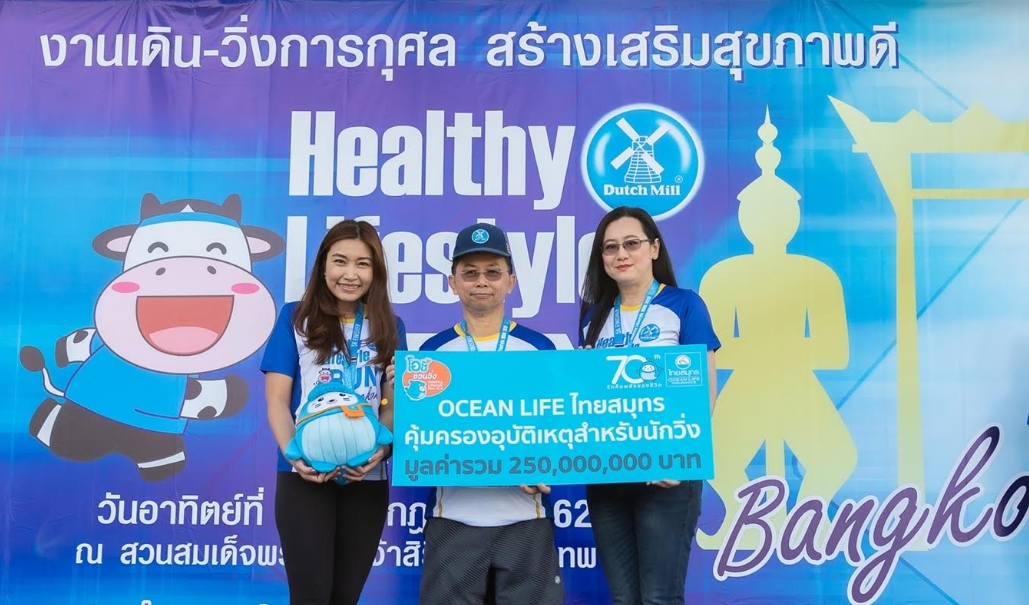 17 กรกฎาคม 2562 : บมจ.ไทยสมุทรประกันชีวิต รักคือพลังของชีวิต โดยคุณหนึ่งฤทัย นิ่มจินดา (ขวา) ผู้อำนวยการฝ่ายอาวุโส ฝ่ายการตลาดสถาบัน 2 พร้อมด้วยคุณปูชิตา เจริญพงศ์ ผู้จัดการส่วนอาวุโส ฝ่ายการตลาด ร่วมมอบความคุ้มครองอุบัติเหตุนักวิ่งมูลค่ารวม 250 ล้านบาท ให้แก่คุณพรชัย สวัสดิ์สุขสบชัย กรรมการผู้จัดการ บริษัท ดัชมิลล์ จำกัด เพื่อมอบความคุ้มครองอุบัติเหตุสร้างความมั่นใจให้กับนักวิ่ง ในงานเดิน-วิ่งการกุศล Healthy Lifestyle Run 2019 by Dutch Mill สนามกรุงเทพฯ