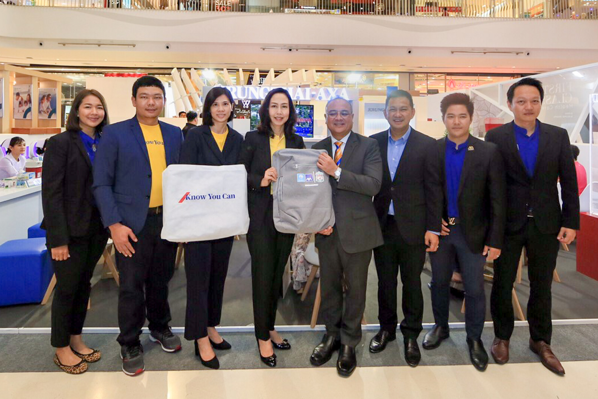22 กรกฎาคม 2562 : บมจ.กรุงไทย-แอกซ่า ประกันชีวิต ร่วมออกบูธในงาน งานวันประกันชีวิตแห่งชาติ ครั้งที่ 20 โดยได้รับเกียรติจาก ชูฉัตร ประมูลผล (ที่ 4 จากขวา) รองเลขาธิการ คปภ. เข้าเยี่ยมชมบูธโดยมี คุณภควิภา เจริญตรา (ที่ 4 จากซ้าย) ประธานเจ้าหน้าบริหาร ฝ่ายลูกค้าและผู้บริหารฝ่ายตัวแทน ให้การต้อนรับและร่วมถ่ายภาพเป็นที่ระลึก กิจกรรมภายในบูธกรุงไทย-แอกซ่า ประกันชีวิต ลูกค้าได้พบกับที่สุดของผลิตภัณฑ์ที่ตอบสนองทุกความต้องการทั้งด้านสุขภาพ ความคุ้มครอง และการวางแผนทางการเงิน พร้อมตรวจสุขภาพฟรี และแคมเปญพิเศษ ที่ได้จัดขึ้น ณ ศูนย์การค้าเซ็นทรัลพลาซา เวสต์เกต จ.นนทบุรี เมื่อเร็วๆ นี้ ![]()