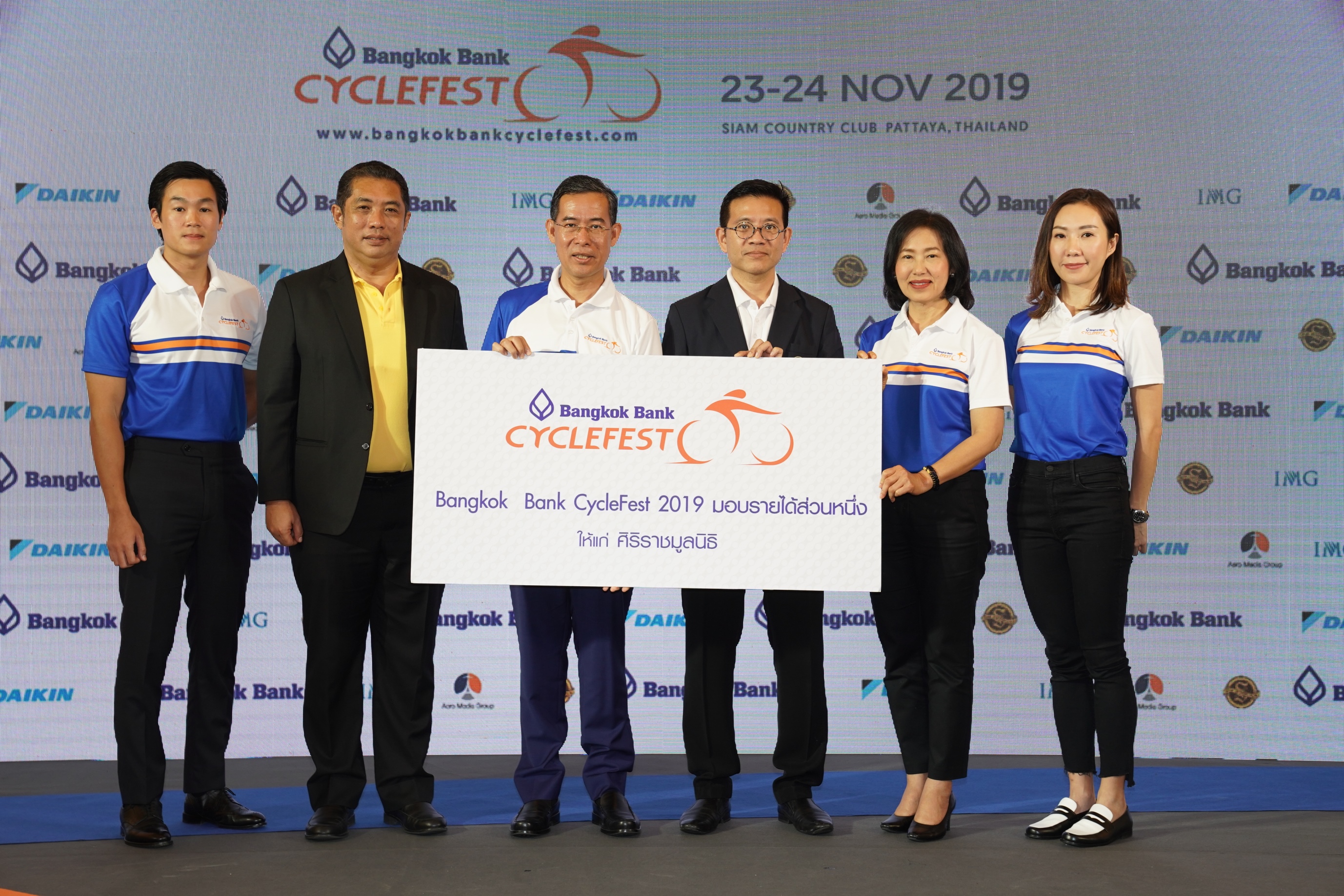 นอกจากนี้ ในการจัด ‘Bangkok Bank CycleFest’ ทุกครั้งยังให้ความสำคัญกับการสนับสนุนกิจกรรมการกุศลแก่องค์กรสาธารณกุศลต่างๆ เพื่อให้นักปั่นได้ร่วมกันทำบุญช่วยเหลือสังคมผ่านการร่วมบริจาคในขั้นตอนการลงทะเบียนสมัครแข่งขัน โดย ‘Bangkok Bank CycleFest 2019’ นี้ จะสมทบทุนบริจาคแก่ศิริราชมูลนิธิ จึงขอเชิญชวนนักปั่นทั้งนักปั่นมืออาชีพและมือสมัครเล่นรวมถึงครอบครัว สมัครร่วมกิจกรรมเพื่อสุขภาพที่สนุกสนาน ‘Bangkok Bank CycleFest 2019’ ที่จะจัดขึ้นในระหว่างวันเสาร์ 23 – วันอาทิตย์ที่ 24 พฤศจิกายน 2562 นี้ ณ สนามกอล์ฟ สยามคันทรีคลับ พัทยา