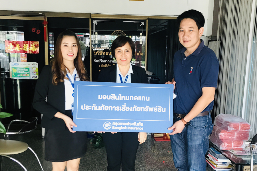 23 กรกฎาคม 2562 : บริษัท กรุงเทพประกันภัย จำกัด (มหาชน) หรือ BKI โดย วรัญญา เทพสาร (ยืนกลาง) ผู้จัดการสาขาเชียงใหม่ ธุรกิจสาขาและการร่วมทุน เป็นผู้แทนบริษัทฯ มอบสินไหมทดแทนประกันภัย การเสี่ยงภัยทรัพย์สิน จำนวน 27,998,545.15 บาท (ยี่สิบเจ็ดล้านเก้าแสนเก้าหมื่นแปดพันห้าร้อย สี่สิบห้าบาทสิบห้าสตางค์) ให้แก่บริษัท ลักษณ์ธนากุล จำกัด ผู้เอาประกันภัยกรณีเกิดเหตุเพลิงไหม้ ทำให้ตัวอาคาร เครื่องจักร และสต๊อกสินค้าได้รับความเสียหาย โดยมี สุพงษ์ ลักษณ์ธนากุล (ขวาสุด) กรรมการผู้จัดการ บริษัท ลักษณ์ธนากุล จำกัด เป็นผู้แทนรับมอบ ณ บริษัท ธนากุล โบรคเกอร์ จำกัด จังหวัดเชียงใหม่ เมื่อวันที่ 12 กรกฎาคม 2562 ที่ผ่านมา ![]()