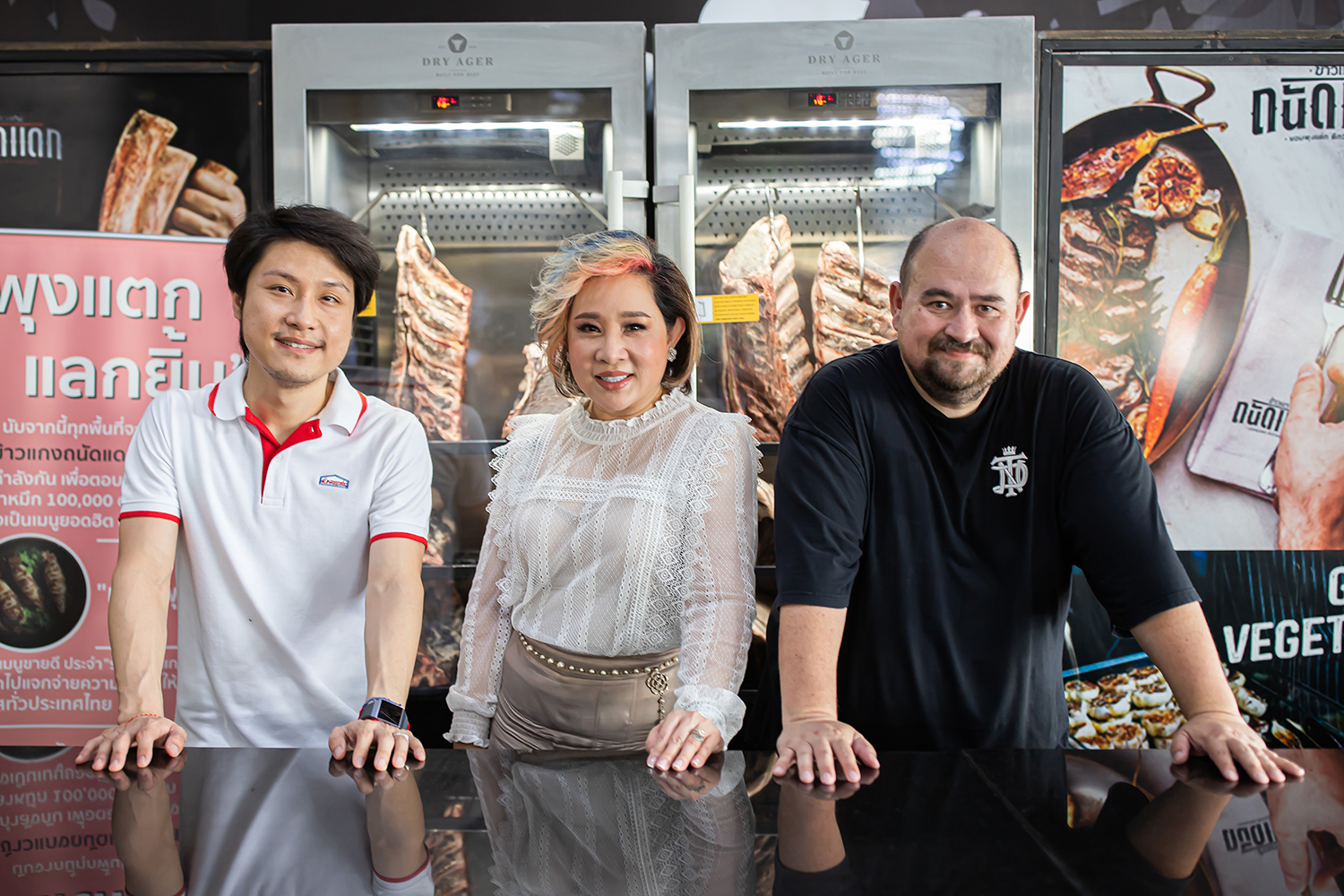 24 กรกฎาคม 2562 : จรัสภล รุจิราโสภณ (ซ้าย) ประธานเจ้าหน้าที่สายงาน QSR และรักษาการผู้อำนวยการสำนักสื่อสารการตลาด บริษัท ส. ขอนแก่นฟู้ดส์ จำกัด (มหาชน) หรือ SORKON สหัสวรรษ ชอบชิงชัย หรือ หม่อมถนัดแดก (ขวา) อินฟลูเอนเซอร์ชื่อดังและผู้บริหารร้านข้าวแกงถนัดแดก และมาดามตวง อุบลรัตน์ ช่อธีระพฤกษ์ (กลาง) Food Celebrity พิธีกรรายการอาหาร ร่วมกันตั้งโครงการ “พุงแตกแลกยิ้ม”
