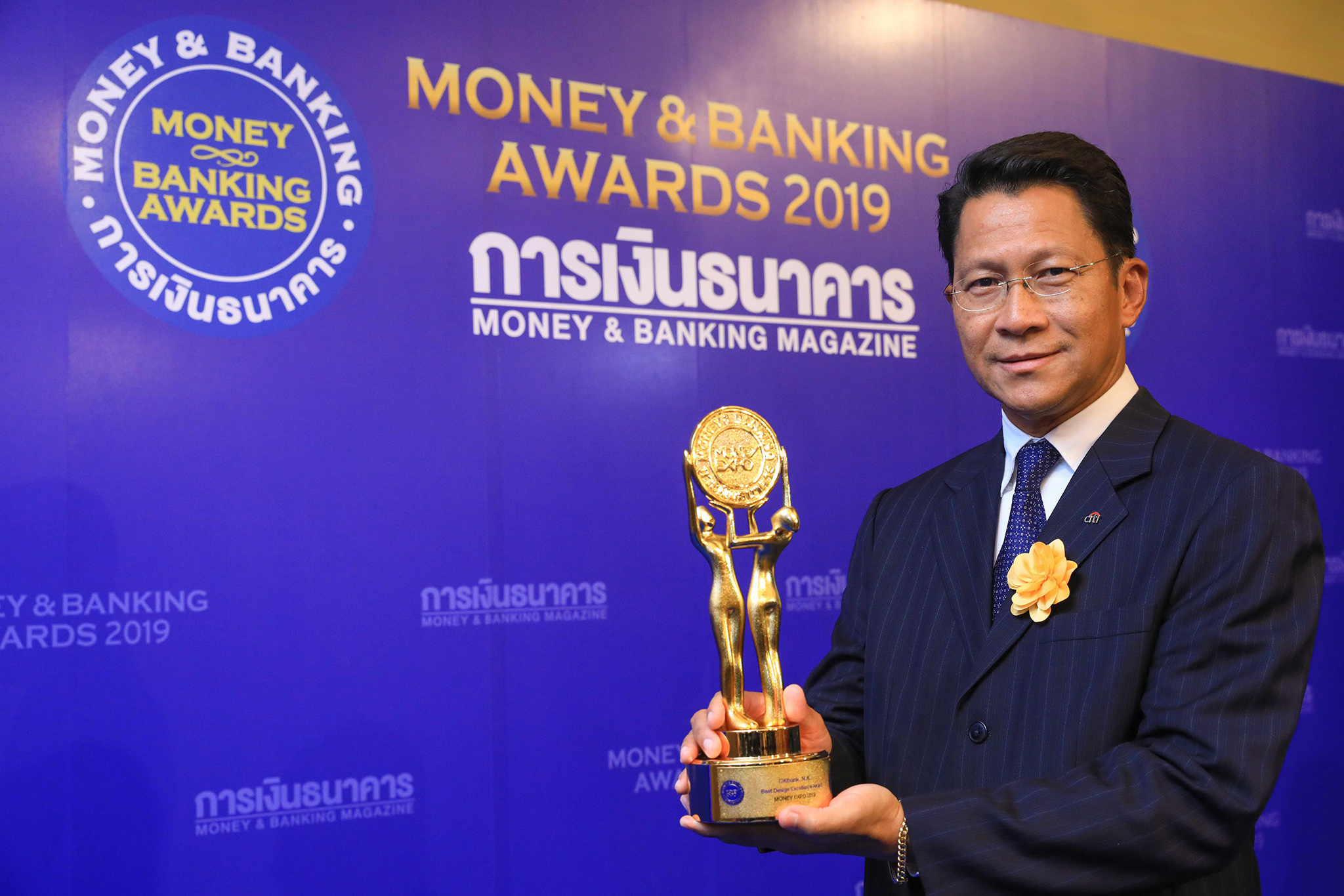 กรุงเทพฯ 30 กรกฎาคม 2562 : ปวิณ รอดลอยทุกข์ รองกรรมการผู้จัดการใหญ่ สายงานรัฐกิจสัมพันธ์ ธนาคารซิตี้แบงก์ ประเทศไทย เป็นตัวแทนธนาคารซิตี้แบงก์ ประเทศไทย เข้ารับรางวัลเกียรติยศในงานมันนี่แอนด์ แบงก์กิ้ง อวอร์ด 2019 ประเภทบูธสวยงามยอดเยี่ยม ที่จัดโดยวารสารการเงินธนาคาร ภายใต้คอนเซ็ปต์ “Welcome What’s Next” ซึ่งสะท้อนถึงการเคลื่อนที่ไปข้างหน้าอย่างไม่หยุดนิ่ง และมุ่งมั่นพัฒนาบริการทางการเงินสมัยใหม่ ที่สามารถทำให้ลูกค้า ผู้ประกอบการ และเศรษฐกิจของประเทศมีความเติบโตและเจริญก้าวหน้าอย่างยั่งยืน ทั้งนี้ กิจกรรมดังกล่าวจัดขึ้นเมื่อเร็วๆ นี้ ณ ดิ แอทธินี โฮเทล แบงค็อก กรุงเทพฯ ![]()