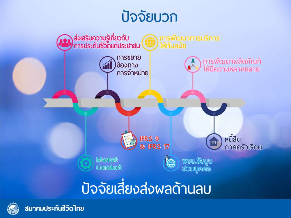 ภาวะความกดดันจากเรื่องมาตรฐานรายงานทางบัญชีและการเงิน IFRS 9, IFRS 17 การดำรงเงินกองทุนตามระดับความเสี่ยง (Risk Based Capital : RBC2) และการเผชิญกับอัตราความเสียหายจากคนกลางและการฉ้อฉลประกันภัย (Fraud & Abuse) สิ่งเหล่านี้ล้วนส่งผลให้ภาคธุรกิจต้องเร่งปรับตัวเพื่อเตรียมรองรับผลกระทบที่จะเกิดขึ้น จึงเป็นสาเหตุให้อัตราการเติบโตของธุรกิจประกันชีวิตในครึ่งปีแรกไม่เติบโตเท่าที่ควร
