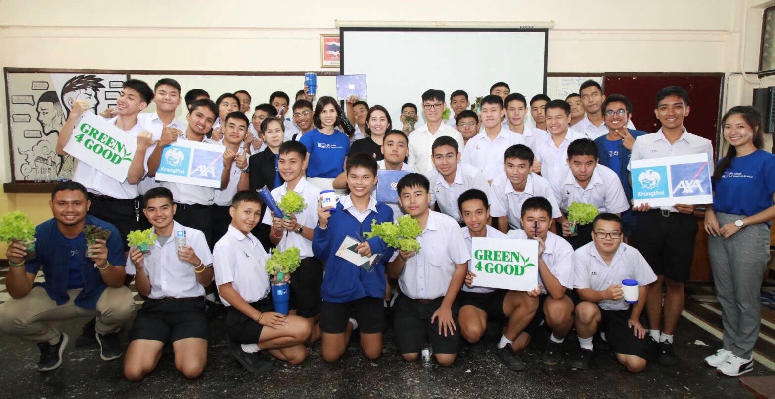 2 สิงหาคม 2562 : บมจ.กรุงไทย-แอกซ่า ประกันชีวิต นำโดย สุกัญญา อิสรานุวัฒน์ชัย รองประธานอาวุโส ฝ่ายสื่อสารการตลาด และภาพลักษณ์องค์กร ร่วมมือกับมูลนิธิครอบครัวพอเพียงจัดกิจกรรม “Green4good” ที่จัดขึ้นอย่างต่อเนื่องเป็นปีที่ 2 (ครั้งที่ 12) โดยกิจกรรมครั้งนี้ได้จัดขึ้น ณ โรงเรียนวัดราชบพิธ เพื่อสร้างความรู้ความเข้าใจเรื่องพื้นฐานการออม และความสำคัญของสุขภาพผ่าน “การปลูกผักไฮโดรโปนิกส์” จากอุปกรณ์รีไซเคิล เพื่อสร้างความเชื่อมั่นให้กับน้อง ๆ ในการวางแผนทางการเงินเพื่ออนาคตของตนเอง พร้อมมีสุขภาพที่ดีและยังช่วยลดโลกร้อนได้ อีกทั้งยังเป็นกิจกรรมที่ตอกย้ำเป้าหมายหลักของบริษัท ฯ คือ การให้โอกาสทุกคนได้มีชีวิตที่ดีขึ้นตามใจปรารถนา ![]()