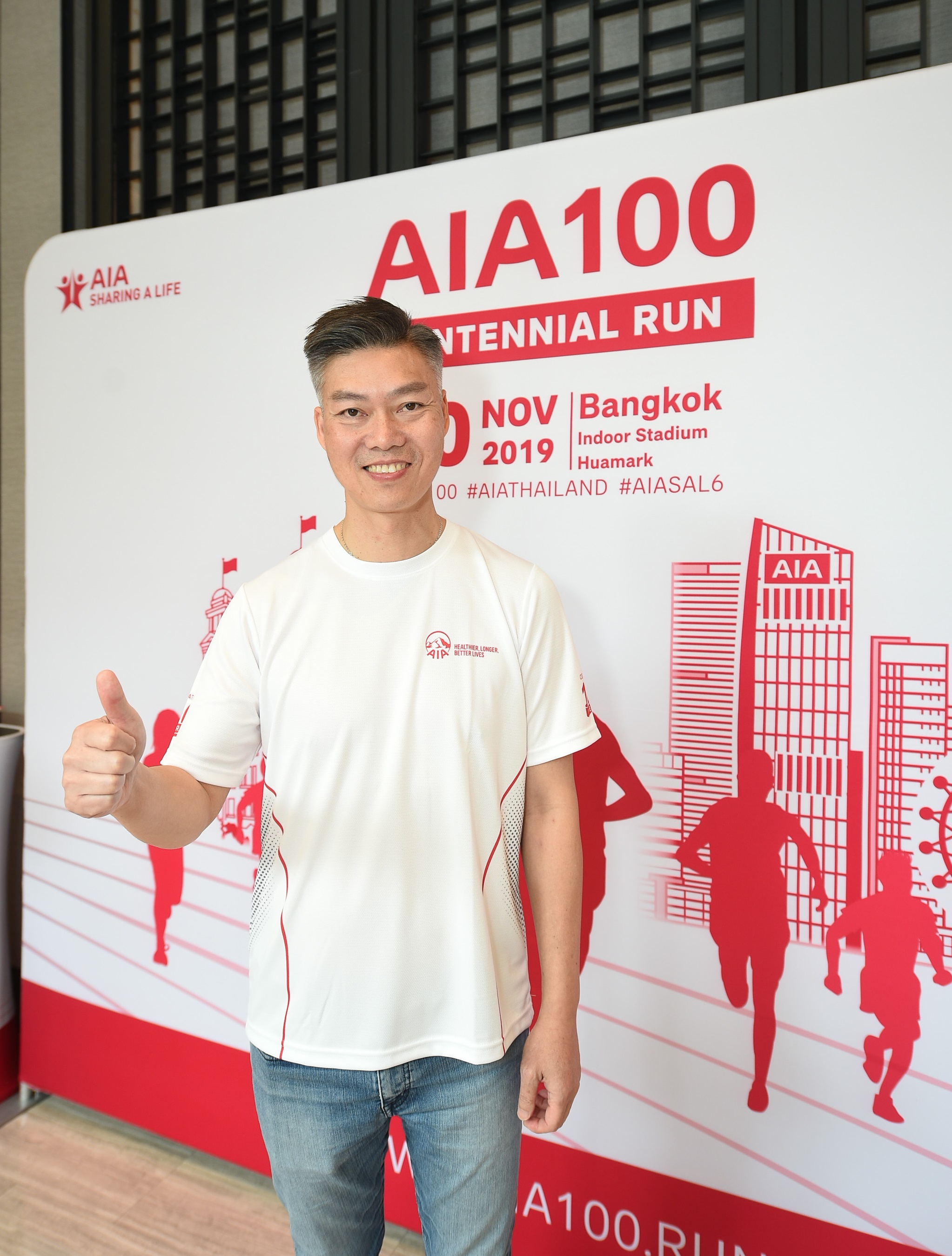 “สำหรับงาน AIA Centennial Run ในปีนี้ เอไอเออยากเชิญชวนให้ทุกท่านมาร่วมออกกำลังกายผ่านการวิ่ง พร้อมทำความดีไปกับเรา โดยงานจะจัดขึ้น ณ อินดอร์ สเตเดียม หัวหมาก ในวันที่ 10 พฤศจิกายนนี้ มีการแบ่งระยะทางวิ่งออกเป็น 3 ระยะ ได้แก่ 3, 5 และ 10 กิโลเมตร และความพิเศษของงานในครั้งนี้คือ เราจะเชิญผู้ที่หายป่วยจากโรคร้ายแรง 100 ท่าน มาวิ่งและทำกิจกรรมร่วมกับเรา เพื่อร่วมเป็นส่วนหนึ่งในการส่งต่อกำลังใจและสร้างแรงบันดาลใจให้กับผู้คนในสังคมได้ตระหนักถึงอันตรายของโรคร้ายแรง และเริ่มต้นออกกำลังกายเพื่อสุขภาพและชีวิตที่ดีขึ้น นอกจากนี้ ภายในงานเรายังมีกิจกรรมเพื่อสุขภาพในรูปแบบอื่น ๆ ให้ทุกคนได้ร่วม อาทิ บูธตรวจสุขภาพฟรี รับคำปรึกษาจากนักโภชนาการ กิจกรรมออกกำลังกายกับ Fitness First รวมถึงมินิคอนเสิร์ตจากศิลปินชื่อดัง”