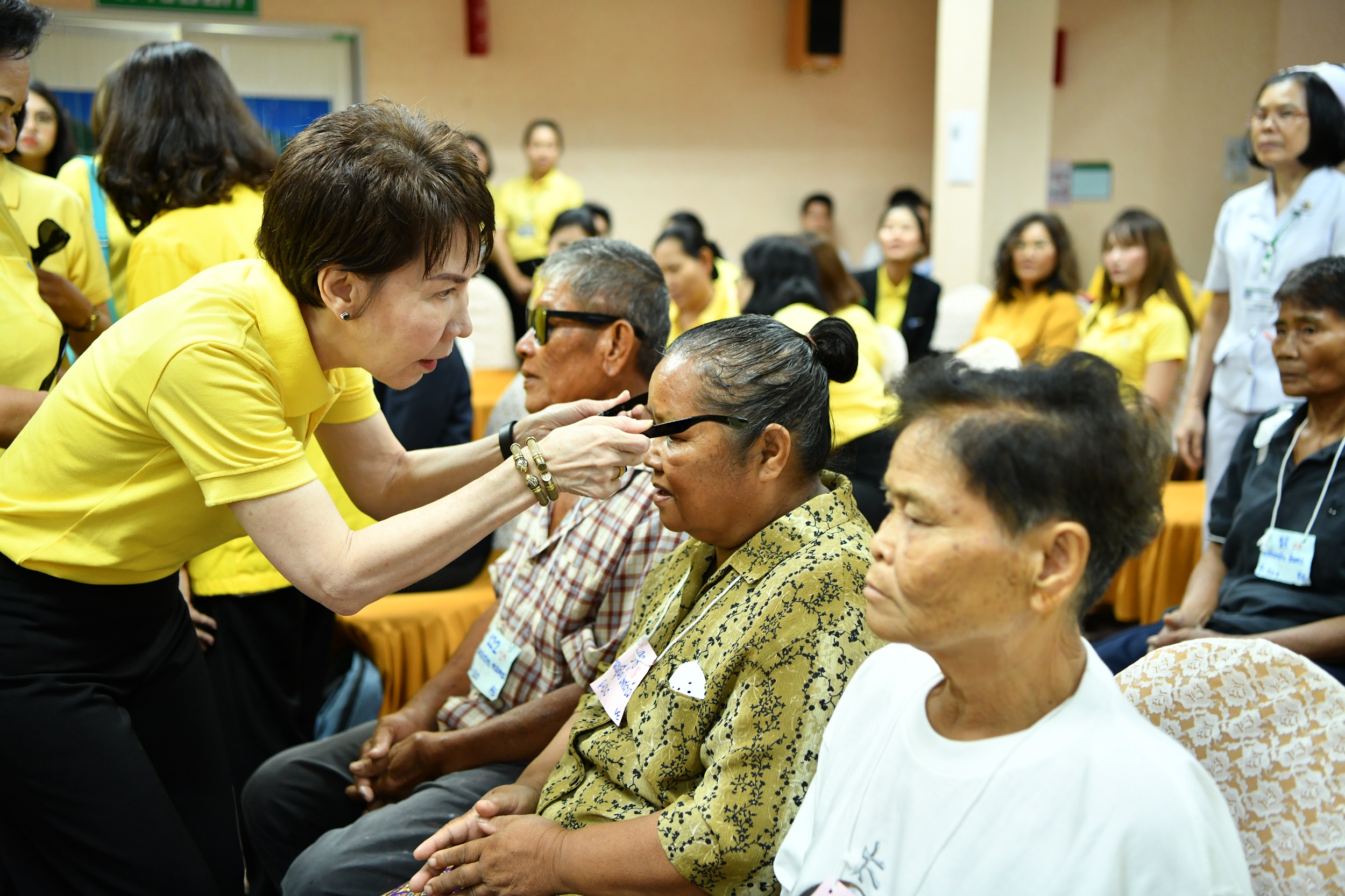 กิจกรรม “มองโลกใส แม้วัยสูงฯ” ครั้งนี้ ดำเนินการภายใต้โครงการผ่าตัดตาต้อกระจกเฉลิมพระเกียรติ ศาสตราจารย์ ดร. สมเด็จพระเจ้า- น้องนางเธอ เจ้าฟ้าจุฬาภรณวลัยลักษณ์อัครราชกุมารี กรมพระศรีสวางควัฒน วรขัตติยราชนารี โดยมีทีมจักษุแพทย์อาสาร่วมลงพื้นที่ดำเนินการผ่าตัด ซึ่งบริษัทฯ สนับสนุนแว่นตากันแสงแดดหลังผ่าตัด จำนวน 600 อัน พร้อมชุดอาหารว่างและน้ำดื่ม รวมมูลค่า 100,000 บาท โดยมีทีมผู้บริหารฝ่ายขาย สาขาเพชรบูรณ์ เป็นจิตอาสาช่วยอำนวยความสะดวกแจกจ่ายแว่นตาและอาหารให้แก่ผู้ป่วย รวมถึงมอบอาหารแก่ญาติ พยาบาล และเจ้าหน้าที่โรงพยาบาลอีกด้วย