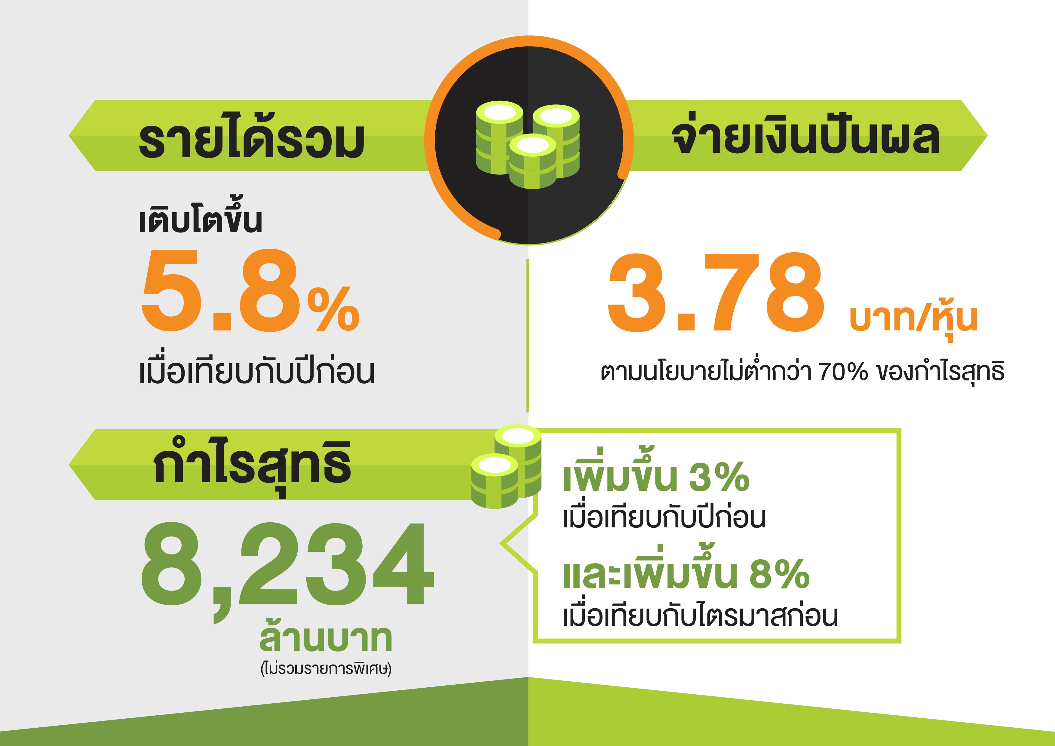 ในโตรมาส 2 ปี 2562 นี้ เอไอเอสยังคงมีรายได้และกำไรเติบโตต่อเนื่อง โดยรายได้รวมเติบโตขึ้น 5.8% จากปีก่อน จากภาพรวมของการแข่งขันในตลาดโทรศัพท์เคลื่อนที่ปรับตัวในทิศทางที่ดีขึ้น ส่งผลให้รายได้ต่อเลขหมาย ARPU (Average Revenue per User) สูงขึ้นเป็น 263 บาทต่อเดือน และส่งผลให้รายได้จากธุรกิจโทรศัพท์เคลื่อนที่เติบโต 5.3% เมื่อเทียบกับช่วงเดียวกันของปีก่อน