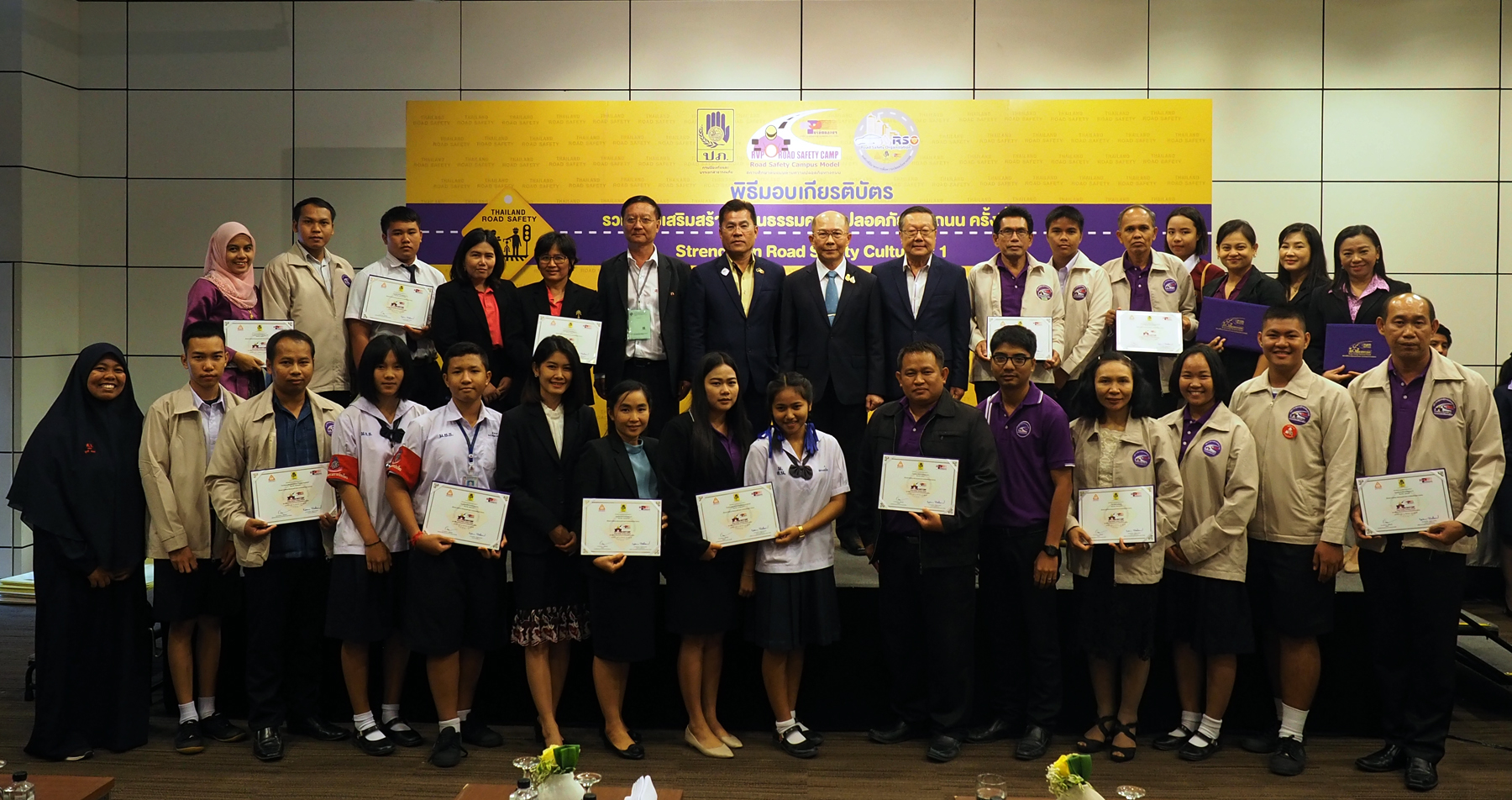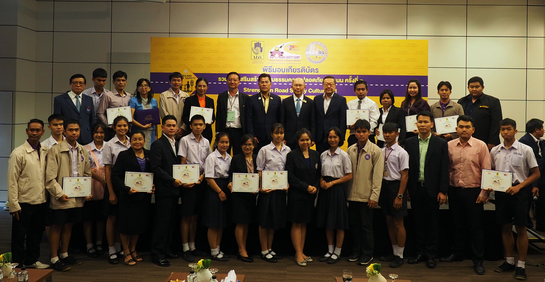 8 สิงหาคม 2562 : บริษัท กลางคุ้มครองผู้ประสบภัยจากรถ จำกัด ร่วมกับกรมป้องกันและบรรเทาสาธารณภัย และมูลนิธิถนนปลอดภัย จัดงาน“รวมพลังเสริมสร้างวัฒนธรรมความปลอดภัยทางถนน ครั้งที่ 1” (1th Strengthen Road Safety Culture) ซึ่งจัดขึ้นภายในงานสัมมนาวิชาการระดับชาติ เรื่องความปลอดภัยทางถนน ครั้งที่ 14 “เดิน ขี่ ขับ ไป-กลับ ปลอดภัย” เพื่อเป็นเกียรติและเป็นเวทีการแลกเปลี่ยนเรียนรู้ถึงกิจกรรมความปลอดภัยทางถนนที่สถานศึกษาและองค์กรได้มีการดำเนินกิจกรรมมาอย่างต่อเนื่องอันเป็นแบบอย่างที่ดีและมีการมอบเกียรติบัตรให้กับสถานศึกษาและหน่วยงานที่มีผลการดำเนินงานด้านความปลอดภัยทางถนนดีเด่น รวมทั้งสิ้น 139 หน่วยงาน