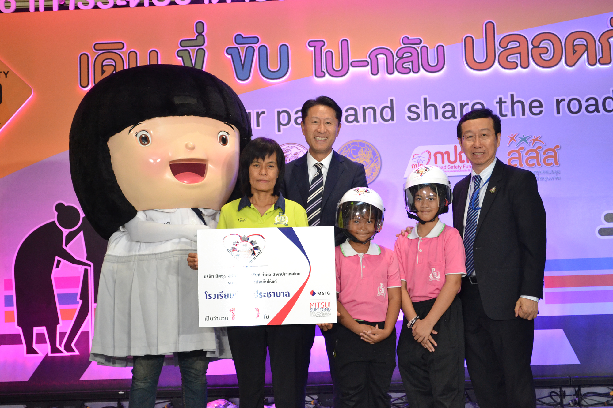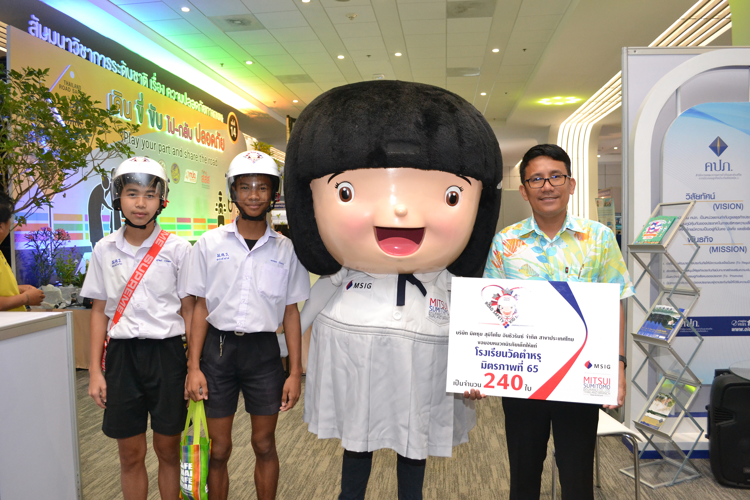 14 สิงหาคม 2562 : เมื่อวันที่ 7-8 สิงหาคม 2562 ที่ผ่านมา บริษัท มิตซุย สุมิโตโม อินชัวรันซ์ จำกัด สาขาประเทศไทย เข้าร่วมงานสัมมนาวิชาการระดับชาติครั้งที่ 14 ภายใต้หัวข้อ “เดิน ขี่ ขับ ไป-กลับ ปลอดภัย” จัดขึ้น ณ ศูนย์นิทรรศการและการประชุมไบเทค โดยบริษัทฯ ได้มอบหมวกนิรภัยสำหรับเด็กให้แก่โรงเรียน และหน่วยงานที่เกี่ยวข้อง จำนวนทั้งสิ้น 1,810 ใบ เพื่อสานต่อโครงการ “ขอบคุณที่ห่วงใยหนู” (Kid in Care) ตามนโยบายรณรงค์ และส่งเสริมความตระหนักถึงการขับขี่ที่ปลอดภัยบนท้องถนน ![]()