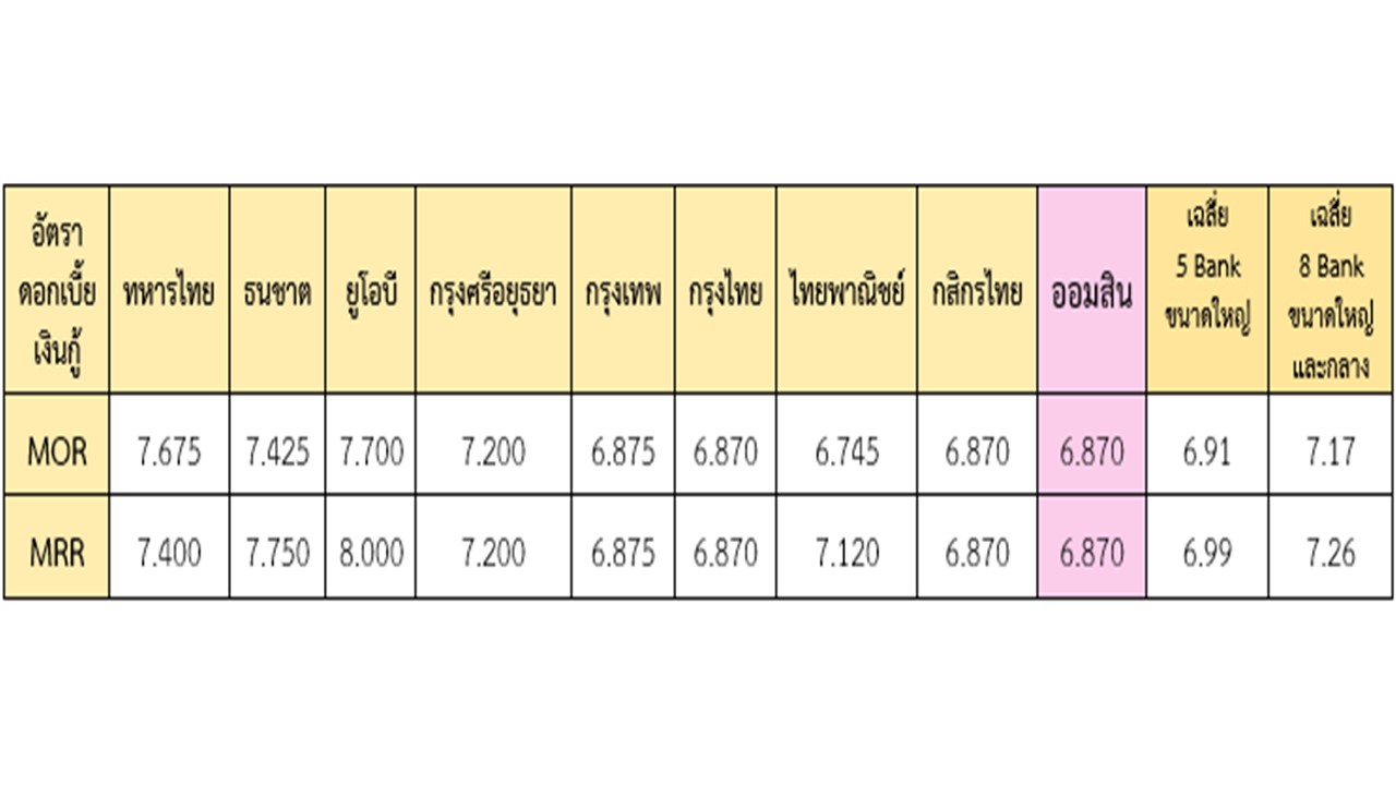 พร้อมทั้ง ปรับลดอัตราดอกเบี้ยเงินกู้ขั้นต่ำประเภทเงินเบิกเกินบัญชี หรือ MOR (Minimum Overdraft Rate) ลดลง 0.13% ต่อปี เช่นกัน จาก 7.00% เหลือ 6.87% ซึ่งทำให้เท่ากับ 2 ธนาคารพาณิชย์ขนาดใหญ่ โดยมีผลตั้งแต่วันที่ 16 สิงหาคม 2562 เป็นต้นไป