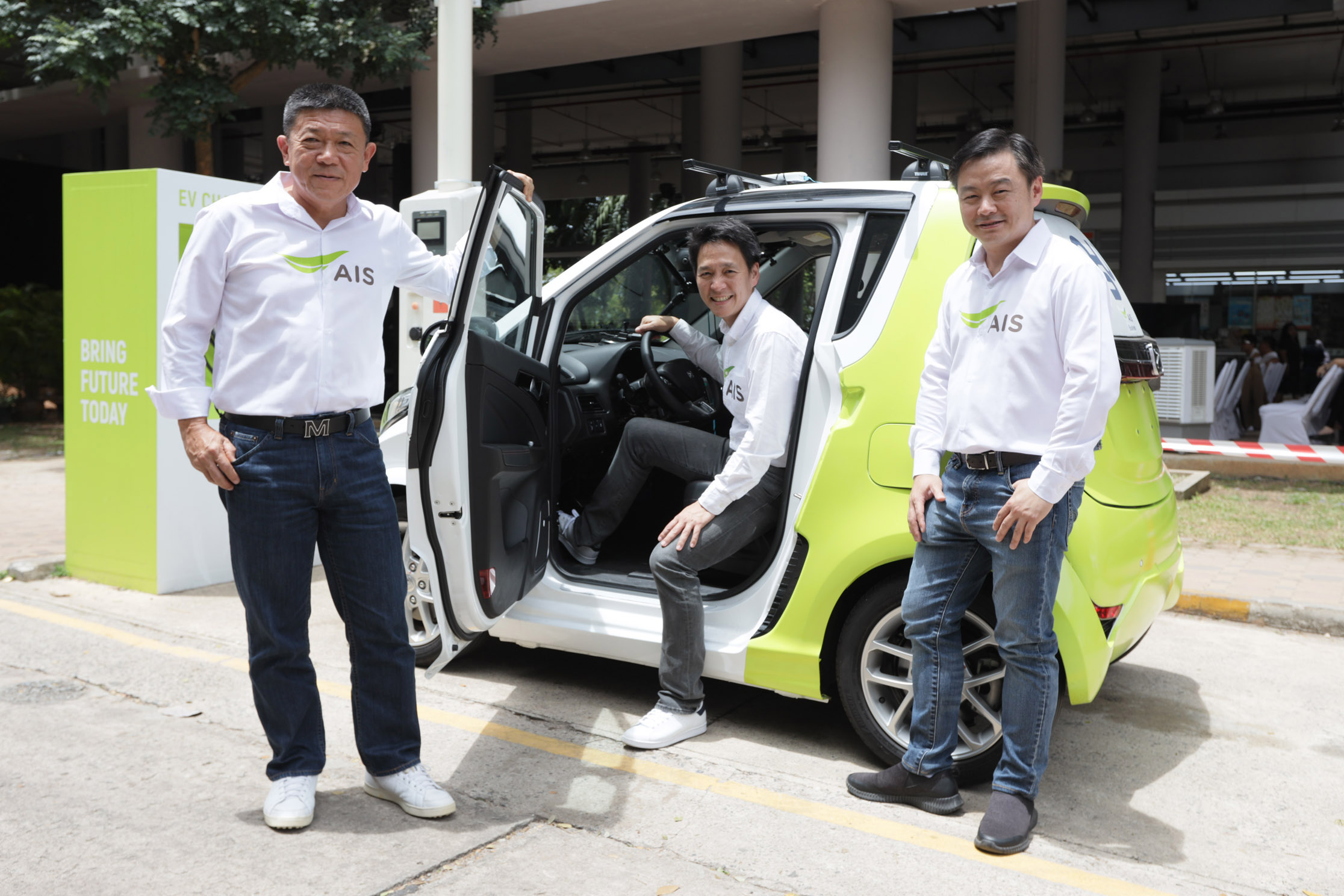 2. นวัตกรรม V2V (การสื่อสารระหว่างรถต่อรถ ผ่าน 5G) : การสาธิตนวัตกรรมการสื่อสารระหว่างรถต่อรถ (Vehicle to Vehicle) ผ่านเครือข่าย 5G ที่สามารถรับ-ส่งข้อมูลความเร็วสูง มีการตอบสนองที่รวดเร็วและมีความเสถียรของระบบสูง ทำให้รถยนต์ 2 คัน สามารถสื่อสารข้อมูลการขับขี่ ข้อมูลความปลอดภัย และข้อมูลการจราจรไปมาระหว่างกันเองได้อย่างแม่นยำและปลอดภัย ซึ่งจะช่วยป้องกันอุบัติเหตุที่อาจเกิดขึ้น รวมถึงเพิ่มประสิทธิภาพการจราจรในเส้นทาง