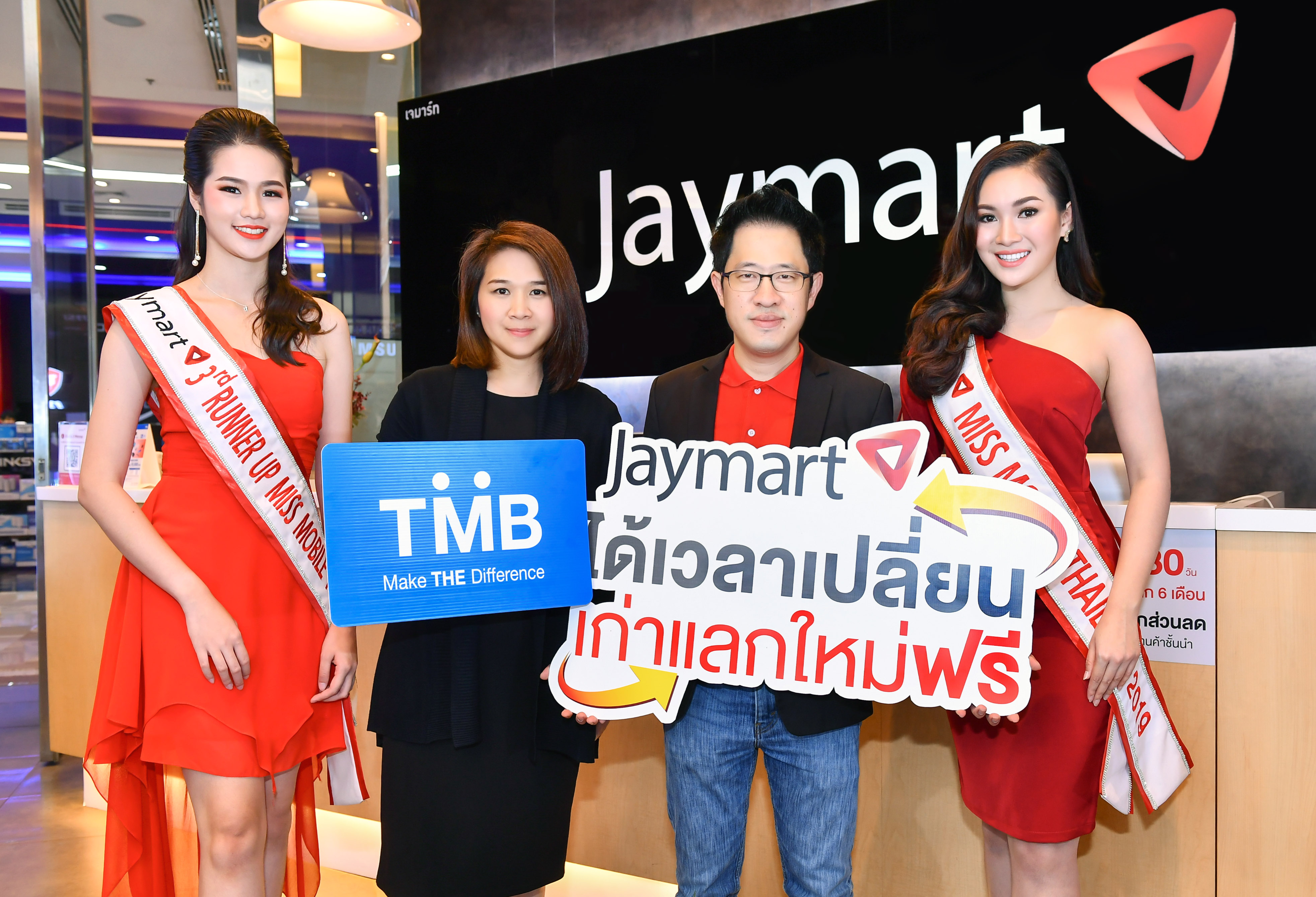 19 สิงหาคม 2562 : บัตรเครดิตทีเอ็มบี โดย พัชรี กมลเวชช (ที่สองจากซ้าย) เจ้าหน้าที่บริหารการตลาดลูกค้าบุคคล-ผลิตภัณฑ์สินเชื่อ ธนาคารทหารไทย จำกัด (มหาชน) ร่วมกับ นราธิป วิรุฬห์ชาตะพันธ์ (ที่สองจากขวา) ประธานเจ้าหน้าที่บริหาร บริษัท เจมาร์ท โมบาย จำกัด จัดโปรโมชั่นให้แก่ลูกค้าบัตรเครดิตทีเอ็มบี เมื่อใช้จ่ายผ่านบัตรที่เจมาร์ททุกสาขา ในแคมเปญฉลองครบรอบ 30 ปี “เจมาร์ท จัดดีลใหญ่ เก่าแลกใหม่ ลด 5 ต่อ” ณ เจมาร์ท สยามพารากอน เมื่อเร็วนี้