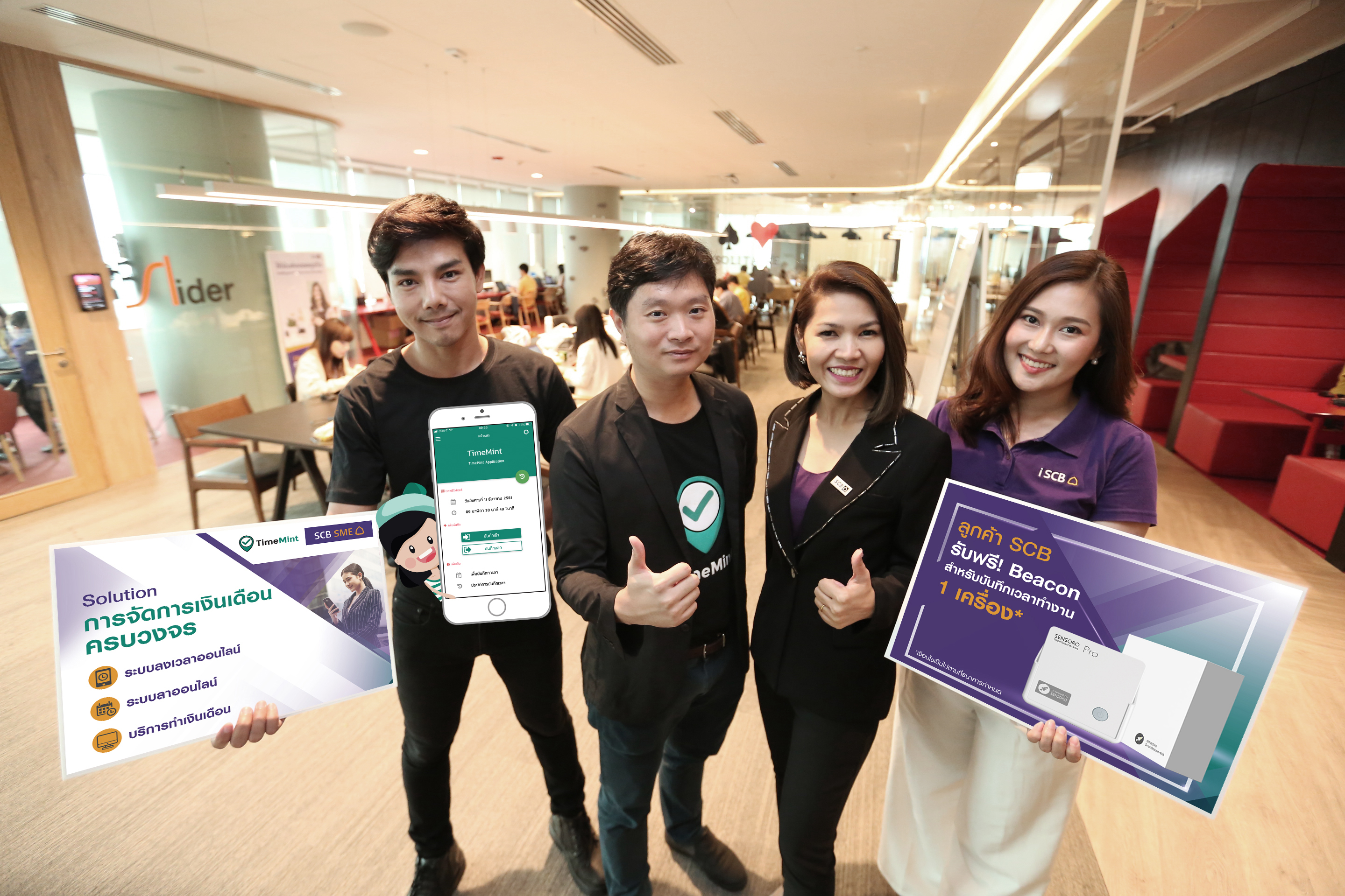 21 สิงหาคม 2562 : ธนาคารไทยพาณิชย์ เดินหน้าขยายพันธมิตรทางด้านดิจิทัลเพื่อเสริมศักยภาพผู้ประกอบการเอสเอ็มอีอย่างต่อเนื่อง จับมือ บริษัท อินเทลสไปร์ จำกัด สตาร์ทอัพไทยผู้พัฒนาแอพพลิเคชั่น Timemint (ทามมิ้น) แพลตฟอร์มดิจิทัลเพื่อการบริหารงานทรัพยากรบุคคล รองรับการจ่ายเงินเดือนพนักงานผ่าน SCB Payroll ที่จะช่วยให้ผู้ประกอบการสามารถจัดการธุรกิจและบริหารค่าใช้จ่ายด้านพนักงานได้อย่างมีประสิทธิภาพมากยิ่งขึ้น ด้วยฟังก์ชั่นการใช้งานที่ครอบคลุม บันทึกเวลาเข้า-ออกงานของพนักงานด้วยรูปแบบที่หลากหลายอย่างแม่นยำ