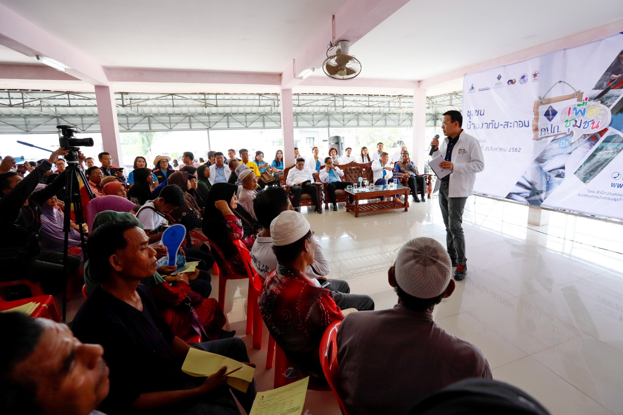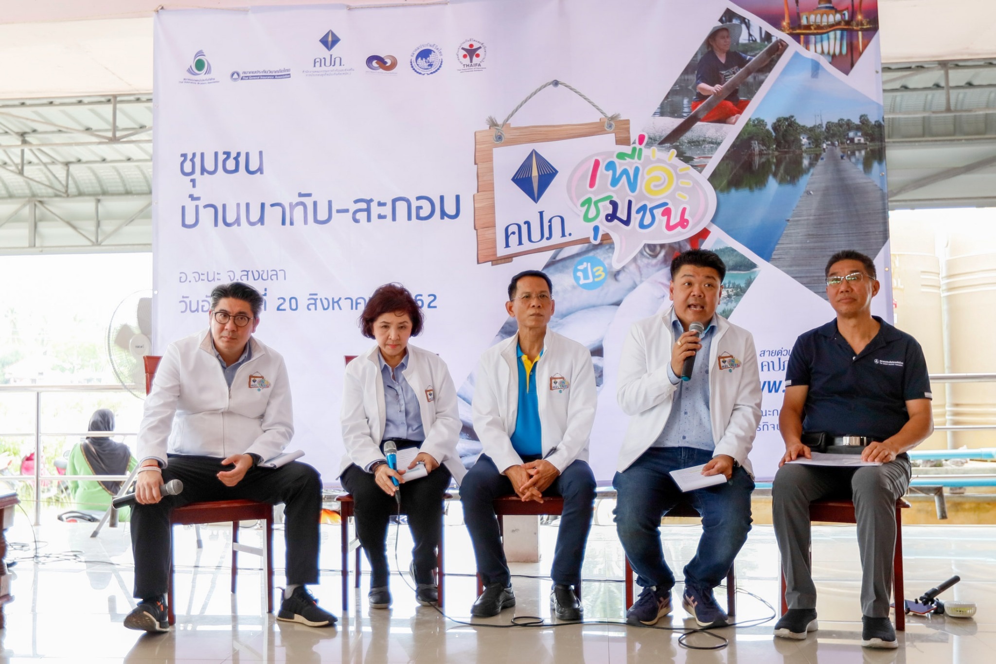 พร้อมเปิดเวที ไขข้อข้องใจและแนะนำในประเด็นต่างๆ เกี่ยวกับการทำประกันภัยประมง เพื่อให้เป็นชุมชนต้นแบบขยายผลไปยังชุมชนอื่นๆ ทั่วประเทศ ในลักษณะการขับเคลื่อนรณรงค์จากฐานรากไปสู่ส่วนบน สำหรับการลงพื้นที่ในครั้งนี้ ได้รับเกียรติจากนายอำพล พงษ์สุวรรณ รองผู้ว่าราชการจังหวัดสงขลา พร้อมด้วยนายสุรินทร์ สุริยะวงศ์ นายอำเภอจะนะ ให้การต้อนรับและร่วมลงพื้นที่ในครั้งนี้ด้วย โดยมีนายปรีชา แดงหลี ประธานกรรมการชุมชนนาทับ ได้พาเยี่ยมชมวิถีชีวิตความเป็นอยู่ และการประกอบอาชีพของชาวชุมชน พร้อมทั้งเยี่ยมให้กำลังใจ และพบปะพูดคุยครอบครัว ผู้ประสบภัยที่ได้รับความเสียหายจากพายุปลาบึกด้วย