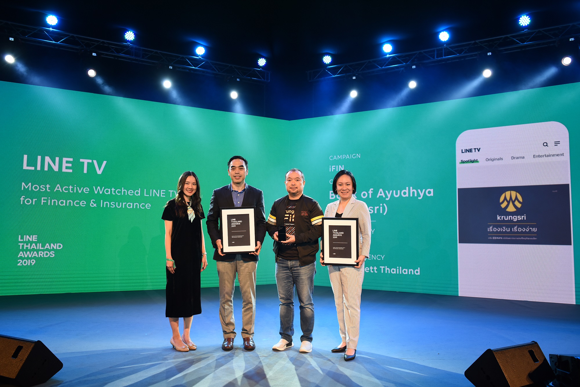 กรุงเทพฯ 26 สิงหาคม 2562 : มิ่งขวัญ พัฒนวงศ์ ผู้ช่วยกรรมการผู้จัดการใหญ่ ผู้บริหารสายงาน Corporate Affairs ธนาคารกรุงศรีอยุธยา จํากัด (มหาชน) รับ 2 รางวัลจากงาน LINE Thailand Awards 2019 ประกอบด้วย 1) รางวัล Most Used Sponsored Stickers สติกเกอร์แบรนด์ที่ได้รับความนิยมมากที่สุดในกลุ่มอุตสาหกรรมการเงินและประกัน สำหรับสติกเกอร์ชุด “Yeah!! Happy Every Day” ของกรุงศรี และ 2) รางวัล Most Active Watched LINE TV โฆษณาที่ได้รับความนิยมมากที่สุดใน LINE TV จากความสำเร็จของโฆษณา Krungsri iFIN