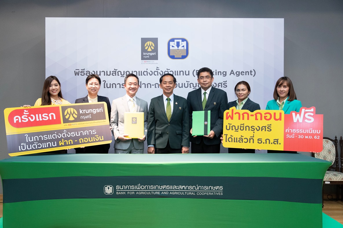 27 สิงหาคม 2562 : นายอภิรมย์ สุขประเสริฐ ผู้จัดการธนาคารเพื่อการเกษตรและสหกรณ์การเกษตร (ธ.ก.ส.) ร่วมเป็นสักขีพยาน ในพิธีลงนามสัญญาแต่งตั้งตัวแทน (Banking Agent) ในการรับฝาก – ถอนเงินบัญชีกรุงศรี ระหว่าง นายเสกสรรค์ จันทร์ขวาง ผู้ช่วยผู้จัดการ ธ.ก.ส. และนายพงษ์อนันต์ ธณัติไตร ประธานคณะเจ้าหน้าที่ด้านลูกค้ารายย่อยและเครือข่ายสาขา ธนาคารกรุงศรีอยุธยา จำกัด (มหาชน) (BAY) โดยการแต่งตั้ง ธ.ก.ส. เป็นตัวแทนในการให้บริการทางการเงิน การรับฝากเงิน ถอนเงิน เพื่ออำนวยความสะดวกแก่ลูกค้าที่มาใช้บริการ โดยสามารถใช้บริการต่าง ๆ ณ จุดบริการของ ธ.ก.ส. ที่ครอบคลุมกว่า 50 สาขา ทั่วประเทศ โดยจะเริ่มเปิดให้บริการตั้งแต่วันที่ 9 กันยายน 2562 เป็นต้นไป เมื่อวันที่ 26 สิงหาคม 2562 ณ ธ.ก.ส. สำนักงานใหญ่ บางเขน ![]()