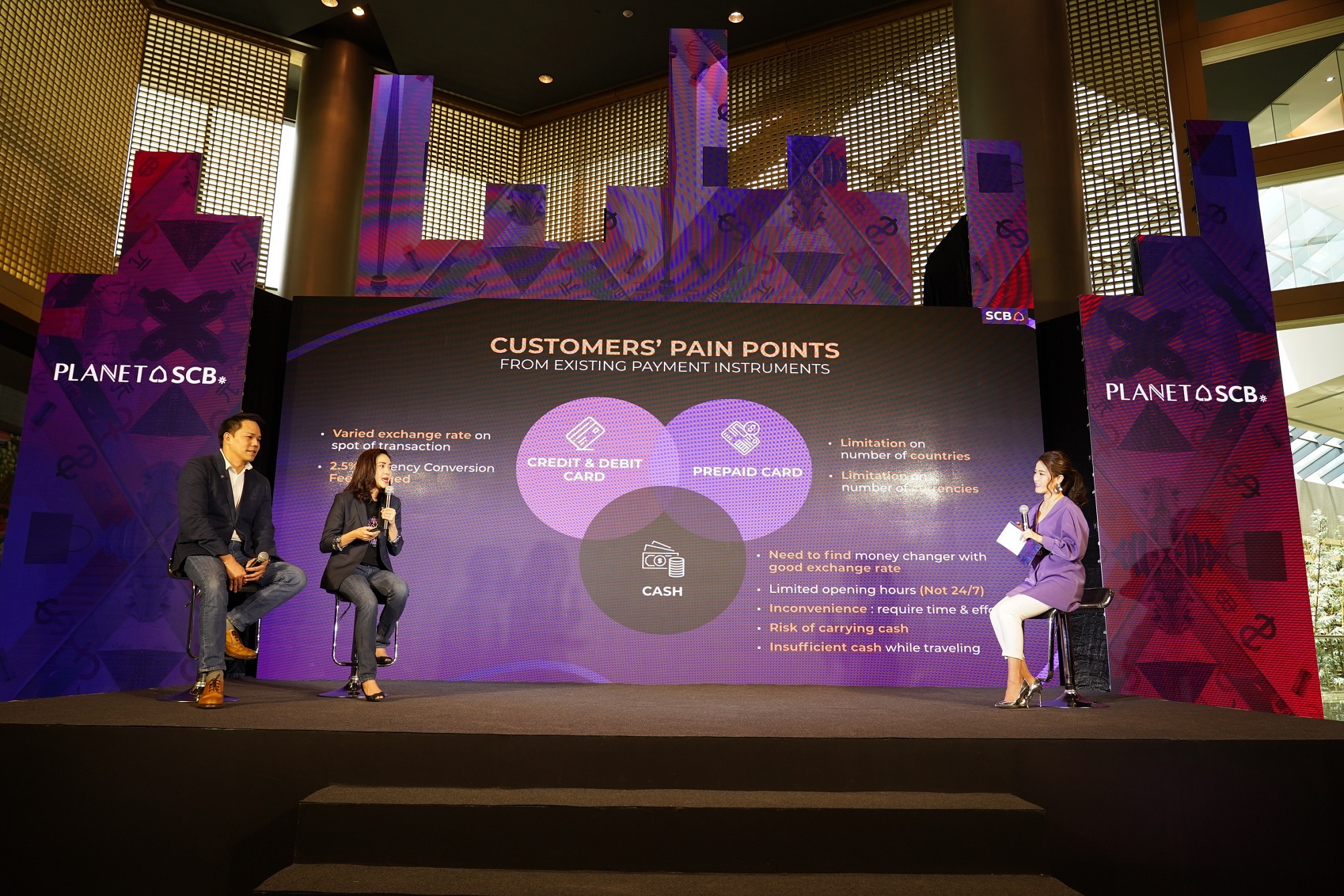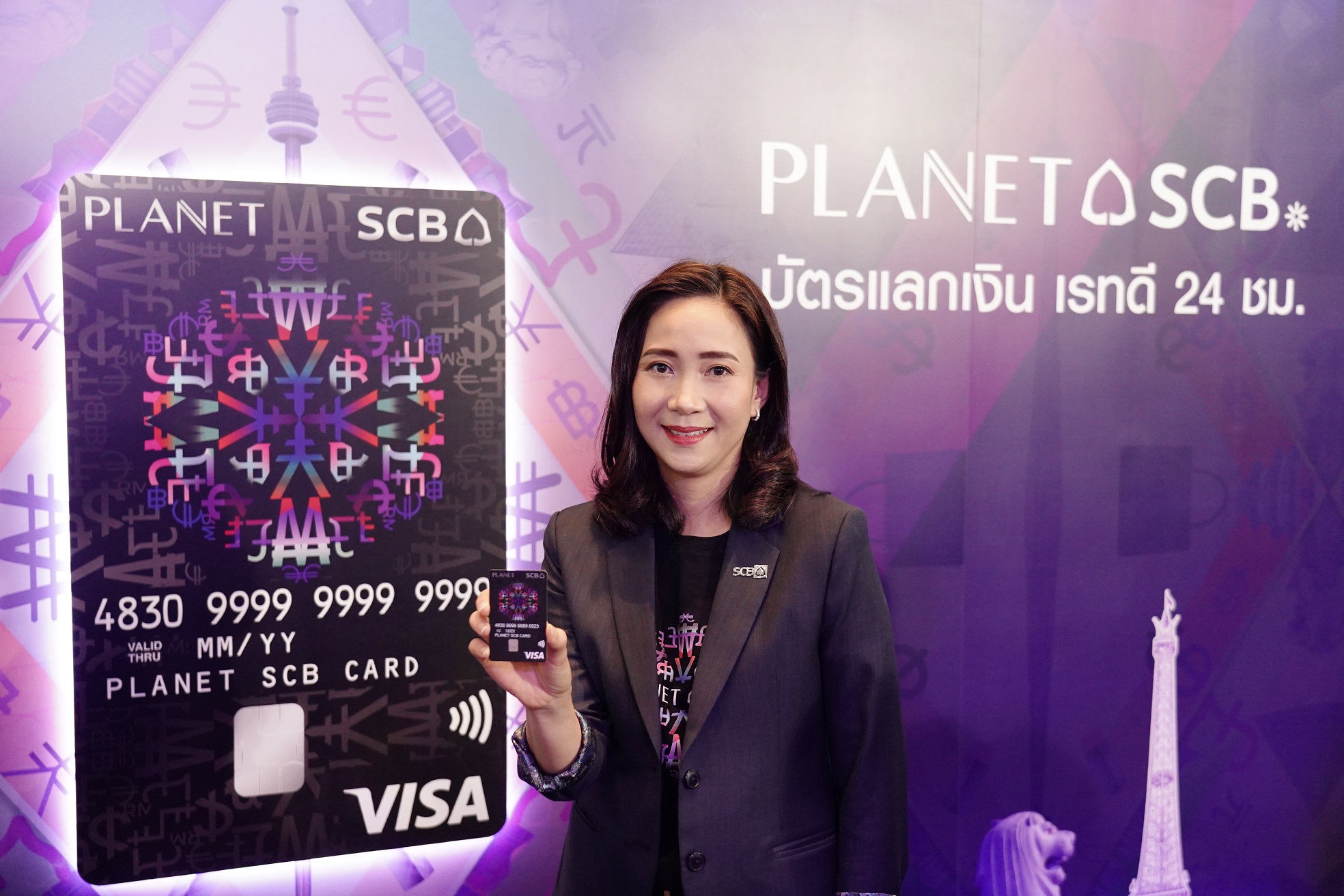 นางสาวอรรัตน์ กล่าวอีกว่า ล่าสุด ธนาคารได้ร่วมมือกับ “วีซ่า” ผู้ให้บริการด้านระบบชำระเงินชั้นนำของโลก เปิดตัวบัตร “PLANET SCB” (พลาเน็ต เอสซีบี) ภายใต้คอนเซ็ปต์ “โลกเสรีแห่งการแลกเงิน” บัตรเดียวใช้จ่ายคุ้มทั่วโลก สามารถแลกสกุลเงินได้มากถึง 13 สกุลเงินยอดนิยมในบัตรเดียว และรองรับสกุลเงินบาท เพื่อใช้จ่ายได้ทุกสกุลเงินทั่วโลกไม่ชาร์จ 2.5% ค่าธรรมเนียมแปลงสกุลเงินต่างประเทศ สะดวก รวดเร็ว แลกเงินง่ายได้ทุกที่ 24 ชั่วโมงผ่านแอปพลิเคชัน SCB EASY กดเงิน รูดใช้จ่าย หรือช้อปออนไลน์ได้สูงสุด 500,000 บาทต่อวัน