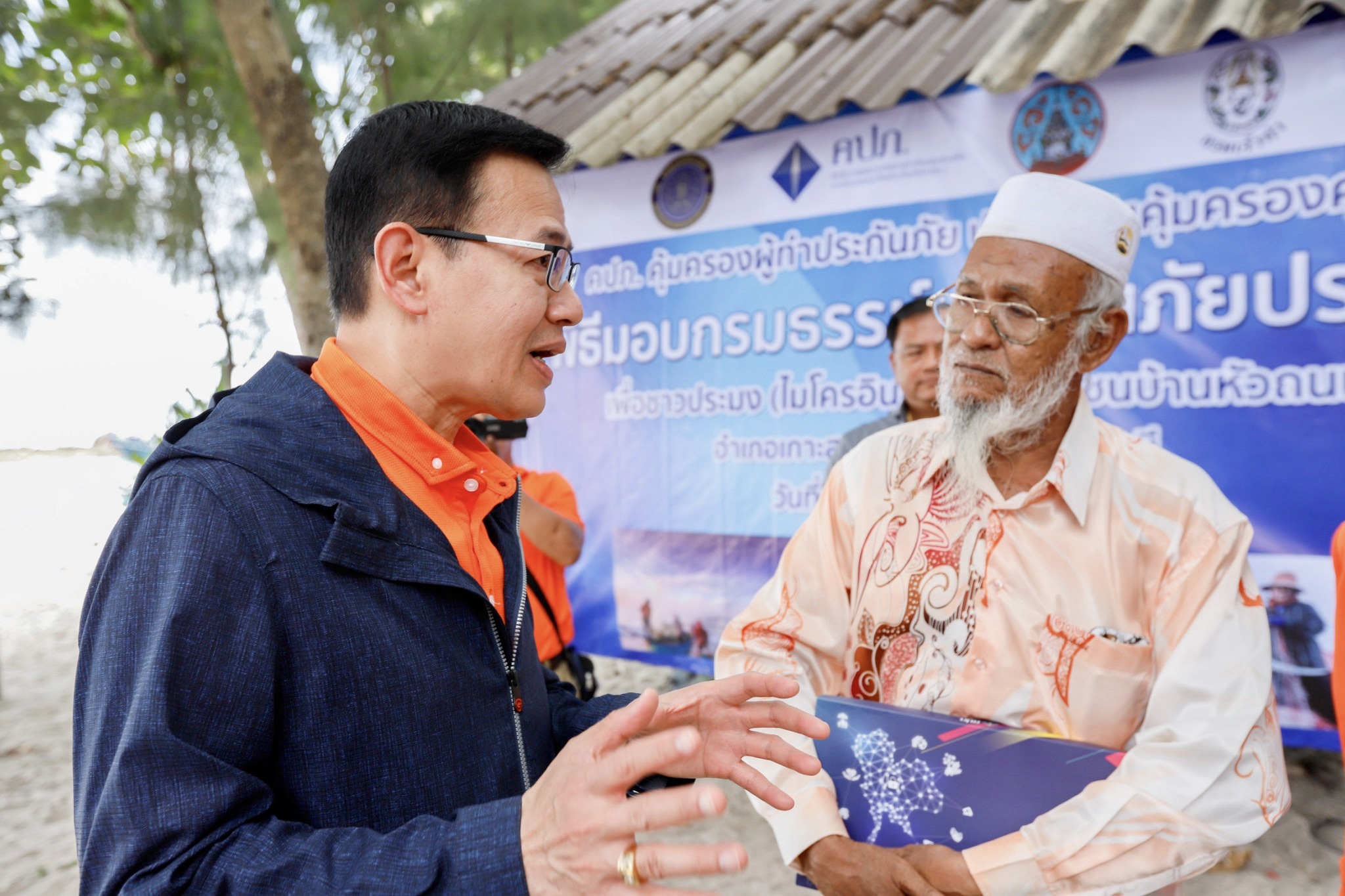 ในโอกาสนี้ สำนักงาน คปภ.ได้แนะนำให้ความรู้ และ มอบกรมธรรม์ประกันภัยเพื่อชาวประมงภาคสมัครใจ จำนวน 45 กรมธรรม์ ให้กับชาวประมงพื้นบ้านชุมชนหัวถนน และชุมชนดอนสัก เพื่อจุดประกายสร้างความรู้ความเข้าใจเกี่ยวกับการประกันภัย โดยได้รับเกียรติจาก นายรามเนตร ใจกว้าง นายกเทศมนตรีนครเกาะสมุย และ ว่าที่ร้อยตรี กิตติภพ รอดดอน นายอำเภอเกาะสมุย ให้การต้อนรับและกล่าวขอบคุณสำนักงานคปภ.ที่นำระบบประกันภัยเข้ามาบริหารความเสี่ยงให้กับชาวบ้านที่ประกอบอาชีพประมงเรือพื้นบ้าน